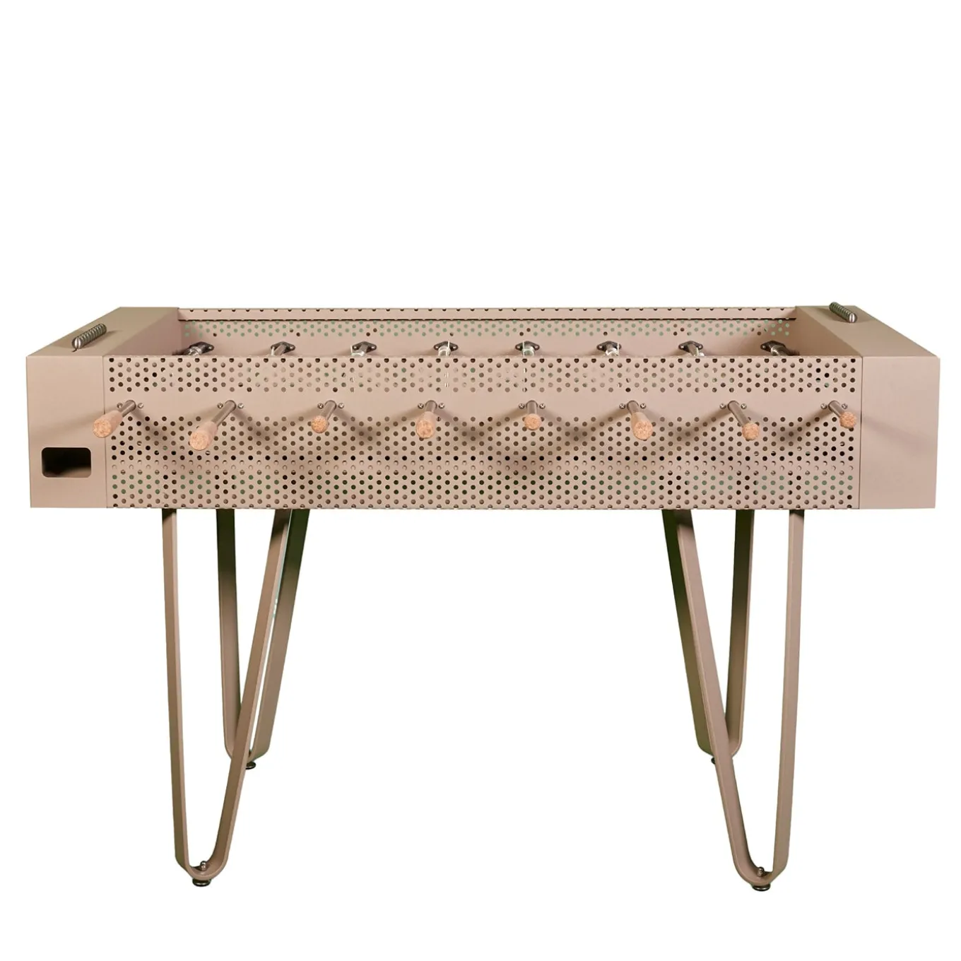 Il calciobalilla Joie in sabbia presenta un’elegante scocca in lamiera forata in una tonalità morbida e neutra, abbinata a giocatori grigi e fucsia. Progettato con un’attenta cura dei dettagli, include impugnature in sughero e una palla in sughero per un’esperienza di gioco confortevole e tattile. Interamente realizzato in metallo con componenti in acciaio inox, poggia su eleganti gambe che assicurano stabilità e un look raffinato e moderno. È disponibile anche una versione per esterni. Altre opzioni di colore sono elencate nel catalogo Artemest. Per maggiori dettagli, contattare il Concierge.