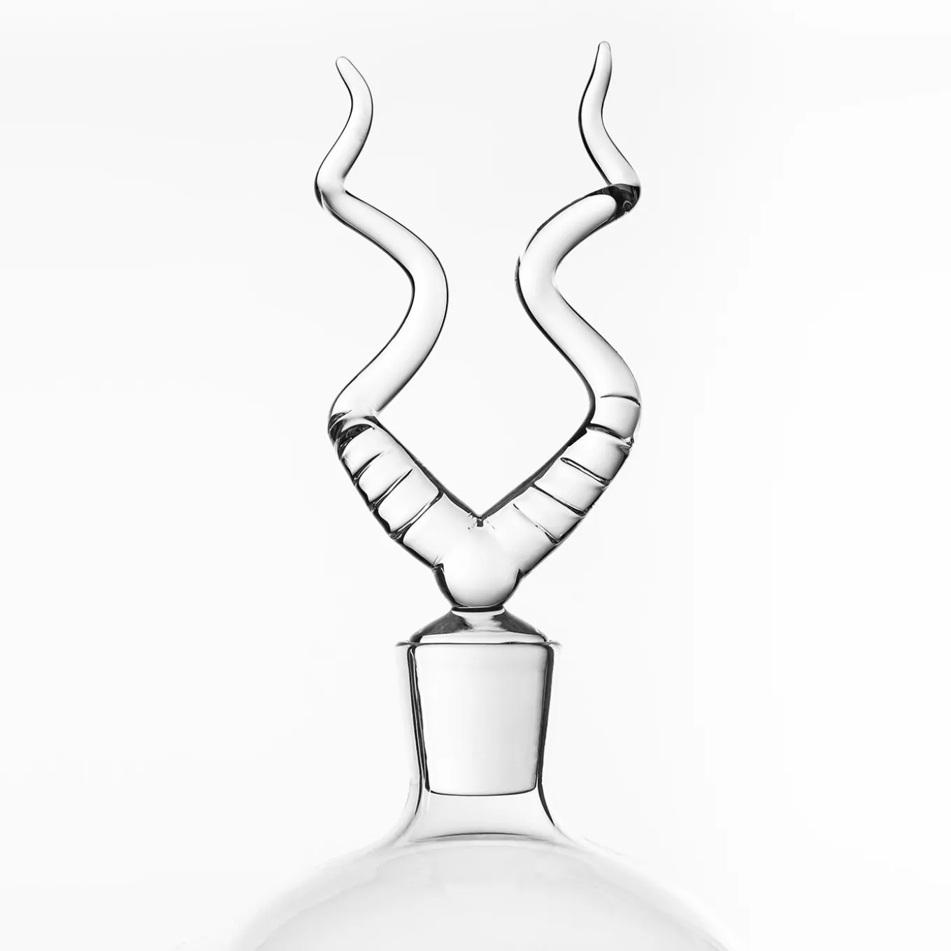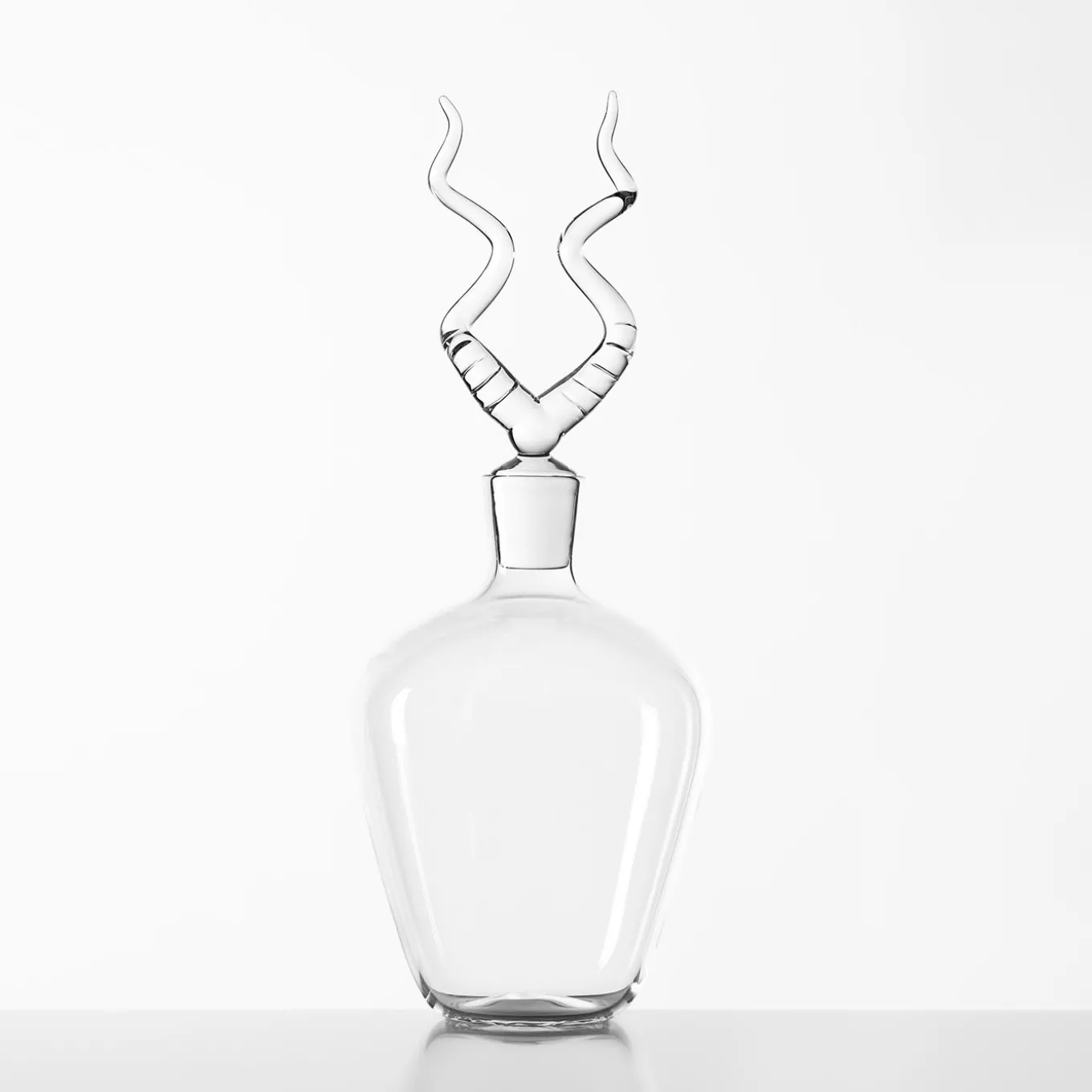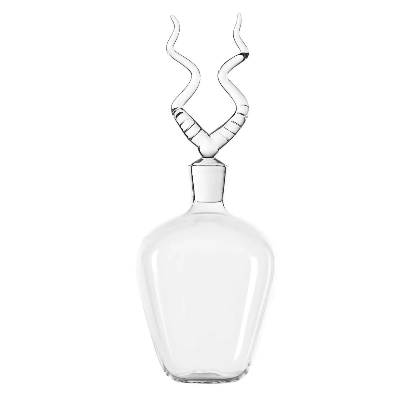 Parte di una serie che celebra il paesaggio e la fauna africana, questa splendida bottiglia di vetro è caratterizzata da un tappo unico arricchito dalle eleganti ed eclettiche corna di un’antilope. Questo squisito pezzo animerà un arredamento contemporaneo con vivace raffinatezza.