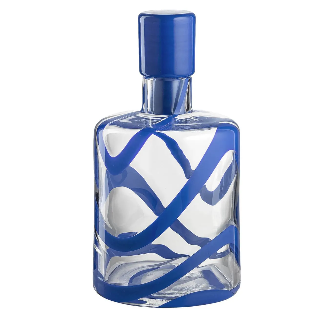 Su un corpo cilindrico in vetro di Murano trasparente, guizzanti fili di vetro blu conferiscono a questa piccola bottiglia la sua caratteristica freschezza. La fluidità della decorazione controbilancia abilmente il rigore di una silhouette cilindrica altrimenti spoglia. Sigillato da un coperchio coordinato, ogni pezzo è un gioiello artigianale unico. Nel catalogo Artemest sono disponibili diverse opzioni di colore.