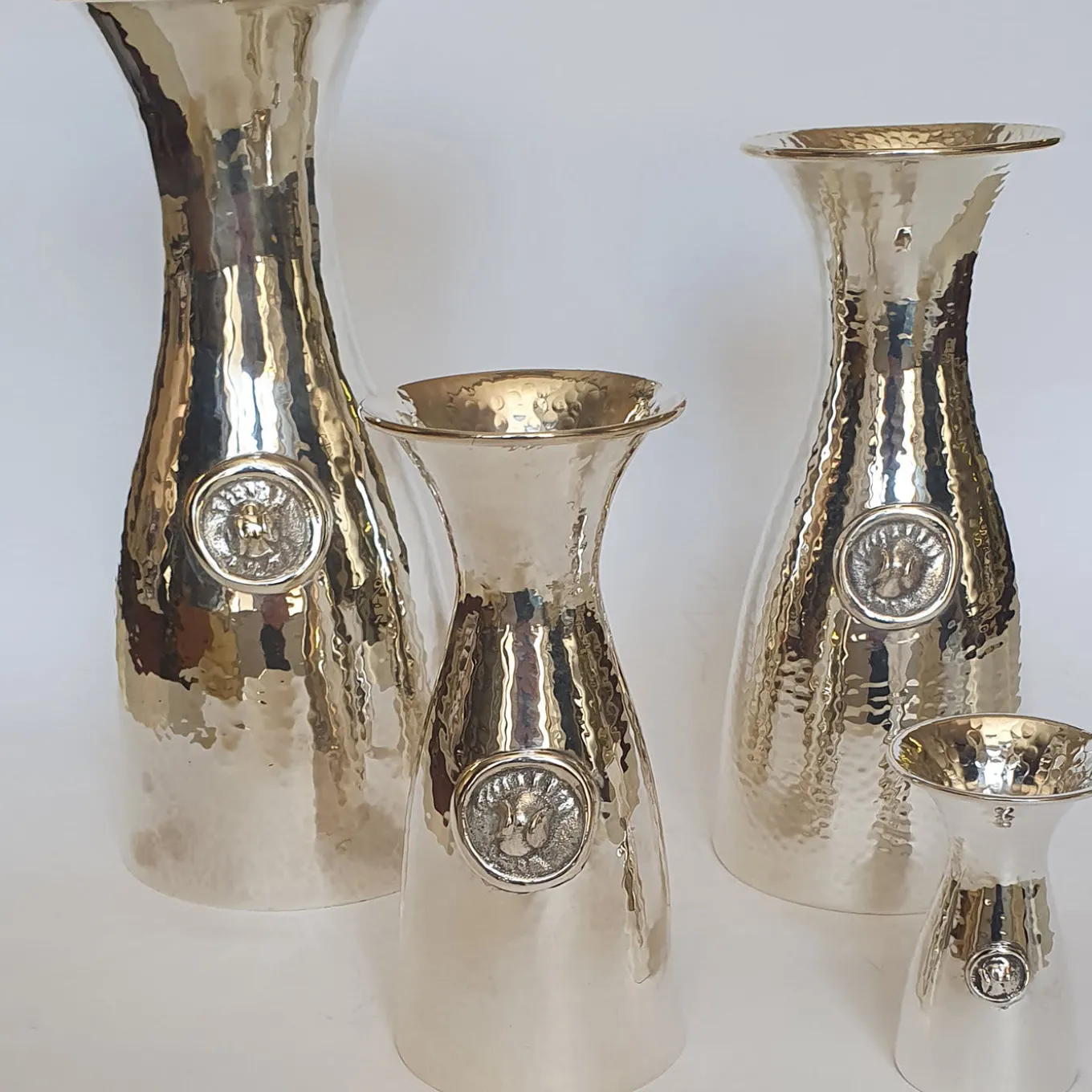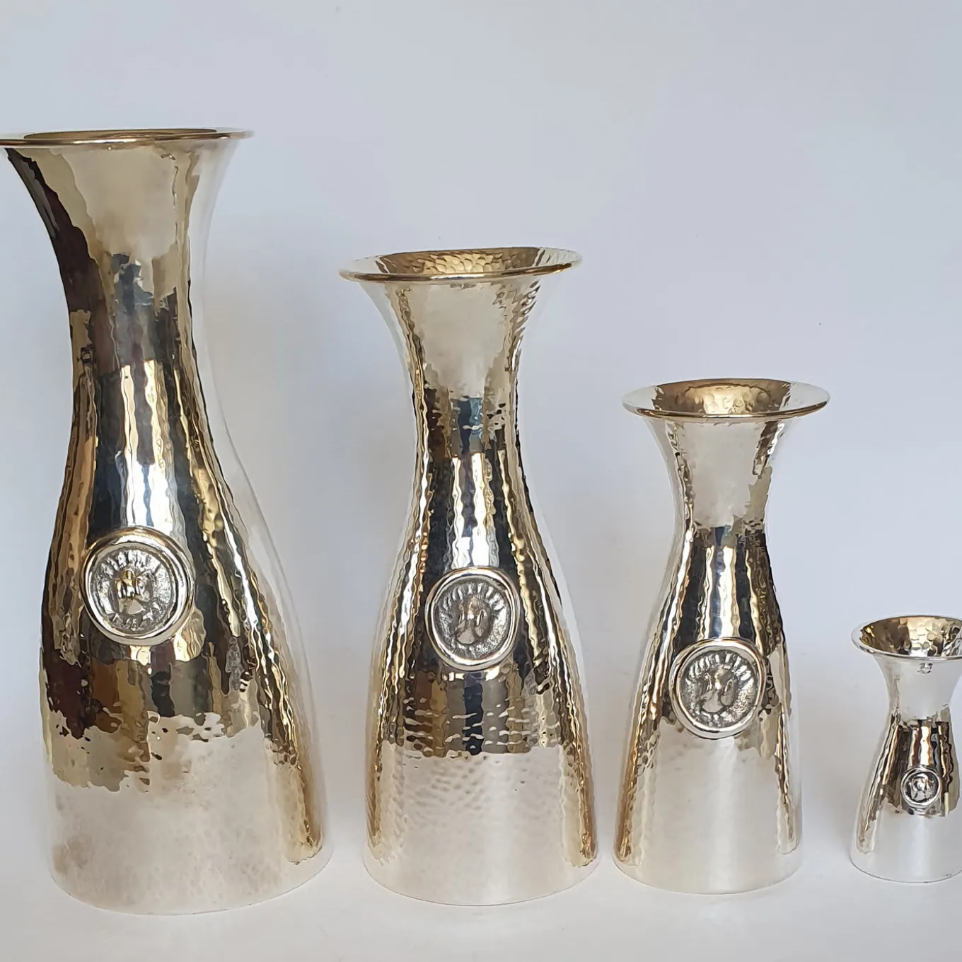 Questa elegante interpretazione di un oggetto iconico della tavola è realizzata interamente in argento massiccio. La classica bottiglia da un litro, che è un punto fermo delle trattorie di una volta in tutta Italia, riceve un aggiornamento sofisticato. La superficie dell’argento è stata leggermente martellata per conferirle una consistenza delicatamente rugosa, mentre al centro è inciso l’emblema che tradizionalmente indica la quantità di liquido contenuto. Giocoso e classico, questo pezzo arricchirà qualsiasi arredamento.