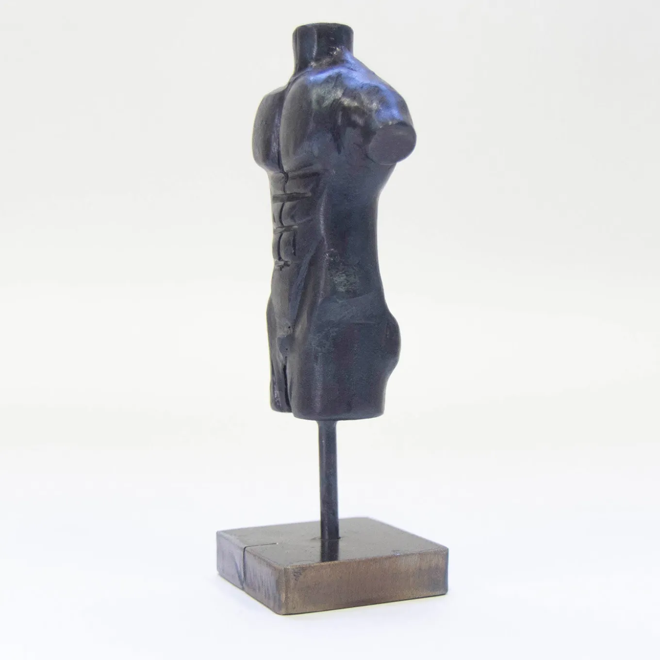 Questa singolare scultura antropomorfa è frutto di un instancabile processo di stampaggio e cesellatura da parte di Lorenzo Quadalti. Nonostante le sue dimensioni ridotte, ha richiesto uno sforzo manuale e una perizia straordinari per essere realizzata e levigata da un unico blocco di ferro, un processo di lavorazione alimentato dalla ricerca della perfezione che riecheggia l’ispirazione e l’etica greca antica della perfezione fisica e mentale.