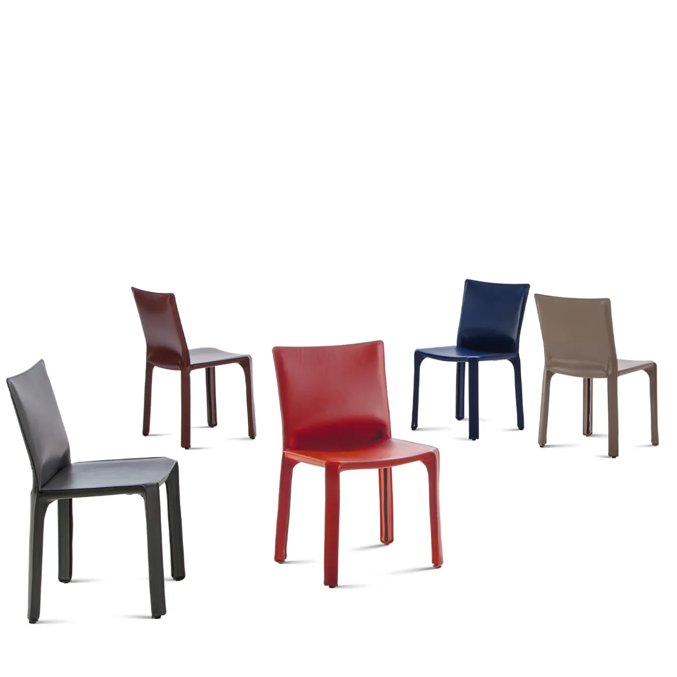 Cab 412 – Sedia in cuoio sellato (tappezzeria cod. 1O). “Si trattava di un nuovo tipo di sedia, costruita totalmente in cuoio, molto clonata da allora”. Così Mario Bellini descrive Cab, un best-seller da lui disegnato negli anni Settanta, oggi pezzo forte della collezione I Contemporanei di Cassina. Cab è stata la prima sedia in assoluto a presentare una struttura in pelle indipendente, ispirata al modo in cui la nostra pelle si adatta al nostro scheletro. Il rivestimento è costituito da sedici pezzi di pelle di sella. Sono sottoposti a quattordici procedure discrete, sempre a mano. I pezzi vengono cuciti insieme solo dopo che i loro bordi esterni sono stati rifilati per garantire una perfetta aderenza. Una volta assemblato, il rivestimento viene fissato allo scheletro d’acciaio della sedia e mantenuto in posizione mediante una chiusura lampo, come in un abito sartoriale su misura. Oggi questo modello si adatta e si espande per soddisfare le esigenze contemporanee. È ora disponibile un modello XL, più profondo di 5 cm, e una versione Baby, realizzata con la stessa cura artigianale. Sono disponibili anche le nuove pelli da sella Plus in pura anilina e alcune versioni con effetto sfumato realizzato a mano su base naturale.
