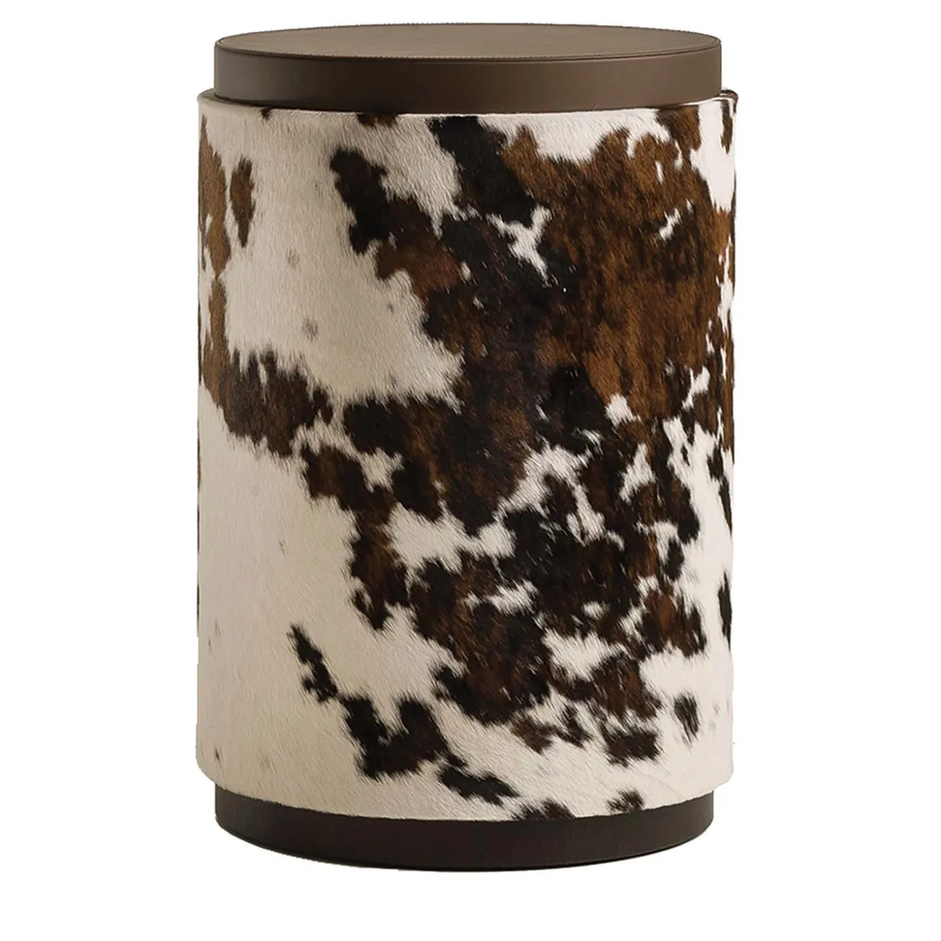 Cabinet In Furs è costituito da un cilindro in noce italiano o rovere scuro, con un piano in pelle e una base in legno. Come una Venere in Pelliccia, il mobile è letteralmente avvolto dalla morbida tappezzeria, nascondendo l’apertura laterale che nasconde l’interno con i suoi preziosi ripiani in legno. Presentato nella versione originale in cavallino e nell’altra versione a pelo lungo e gonfio, Cabinet In Furs si presta a molteplici interpretazioni, rendendo assolutamente possibile la personalizzazione estetica e materica.