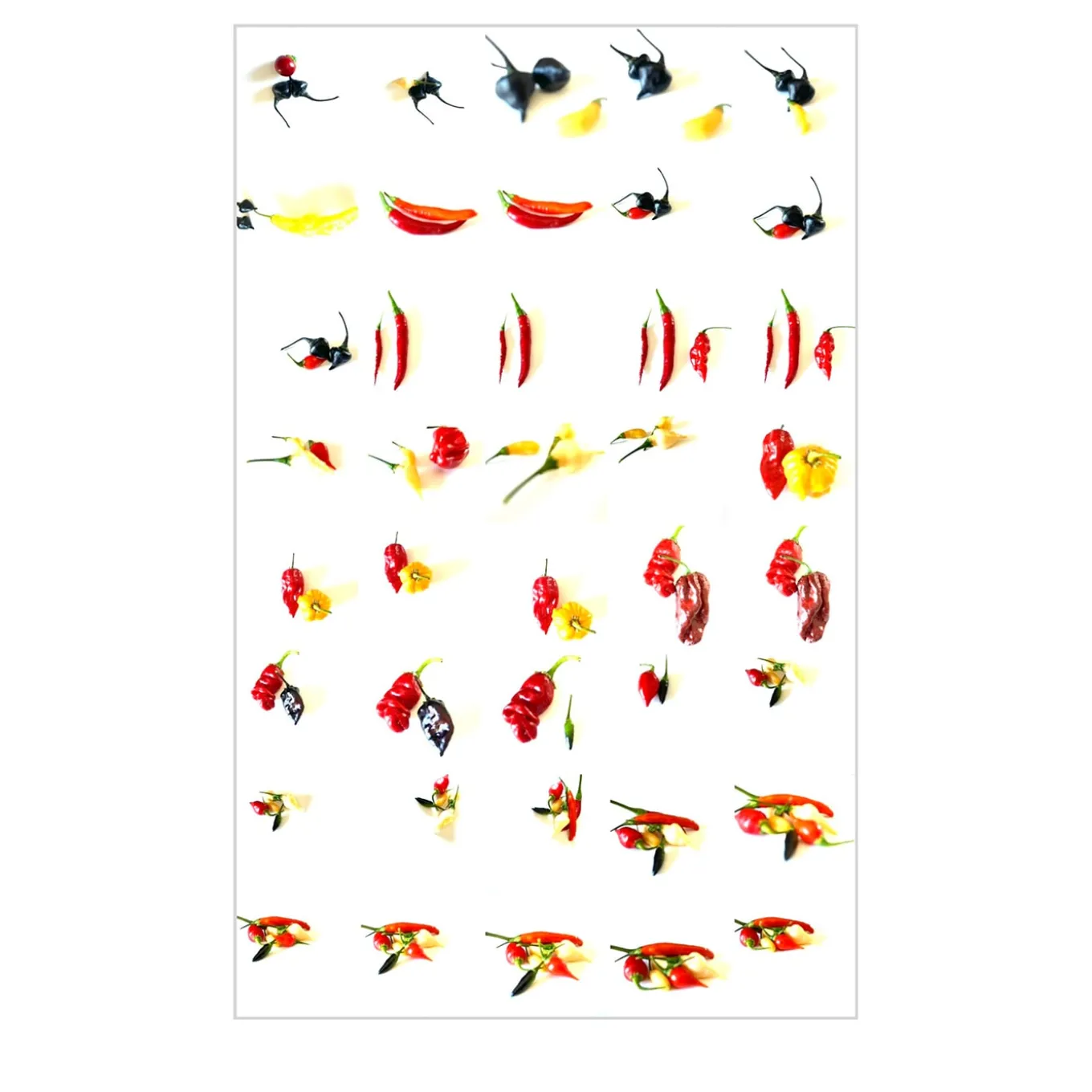 Un vivace disegno composto da file di tre diverse varianti di peperoncini portafortuna caratterizza questo superbo disegno digitale impresso su carta fine art. Un pezzo di qualità impareggiabile, i cui dettagli e tonalità risultano esaltati dalla texture della carta, che promette di mantenere intatta la sua bellezza per decenni. Parte di una serie limitata, viene fornito con un certificato di autenticità.