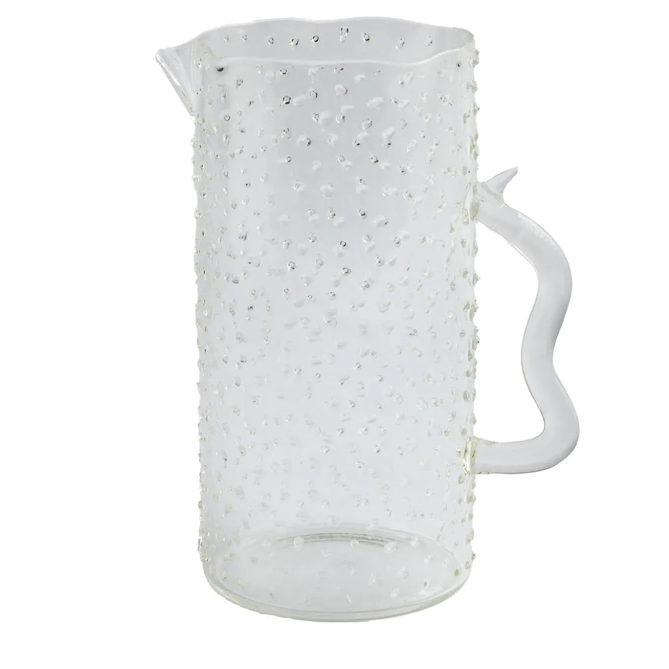 La brocca Pearl, realizzata a mano in Italia da maestri vetrai, è in vetro borosilicato di alta qualità, che garantisce la resistenza agli shock termici per bevande sia calde che fredde. La finitura a gocce è caratterizzata da gocce applicate singolarmente, che creano un effetto pioggia unico. Un pezzo straordinario e versatile per ogni occasione. Disponibile in diverse finiture e colori.