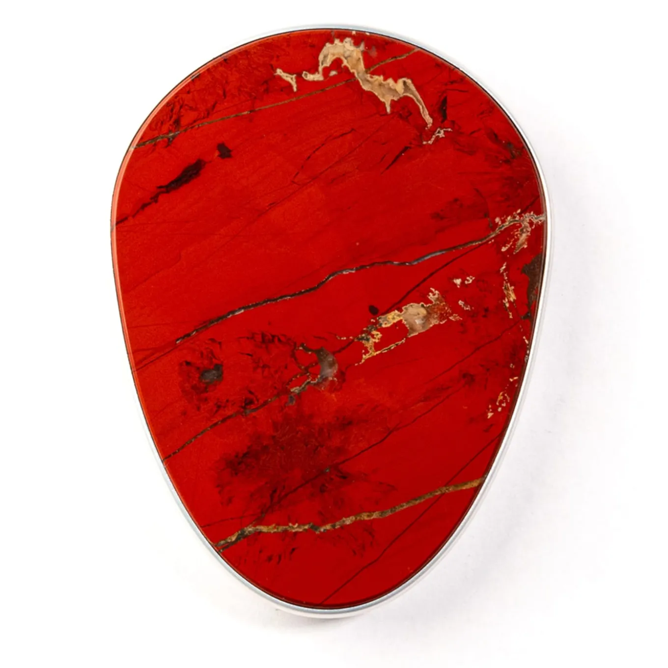 Autentico e irripetibile gioiello che nasconde una funzione di rifornimento dei dispositivi, questo caricabatterie wireless da tavolo brilla di regale raffinatezza. Caratterizzato da un’armoniosa forma a uovo, il telaio in alluminio anodizzato con finitura dorata circonda un inserto in diaspro rosso che colpisce per la sua vibrante e calda tonalità, interrotta solo da delicate venature. Disponibile anche in più varianti di finitura con il Concierge. Non è adatto agli iPhone 14 e 15 Pro.