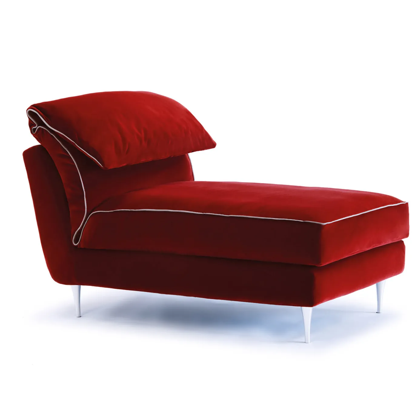 Ispirata alla tradizionale dormeuse, questa chaise longue contemporanea è realizzata a mano utilizzando esclusivamente prodotti naturali certificati, privi di tossine. Questa splendida silhouette presenta un rivestimento rosso mattone con finiture avorio, costruito su una solida struttura in betulla imbottita con schiuma di lattice naturale al 100%, anallergica. Il cuscino di seduta copre la base della piattaforma in un unico pezzo e si ripiega sullo schienale, offrendo un’estetica distintiva. I piedi conici sono in alluminio lucidato.
