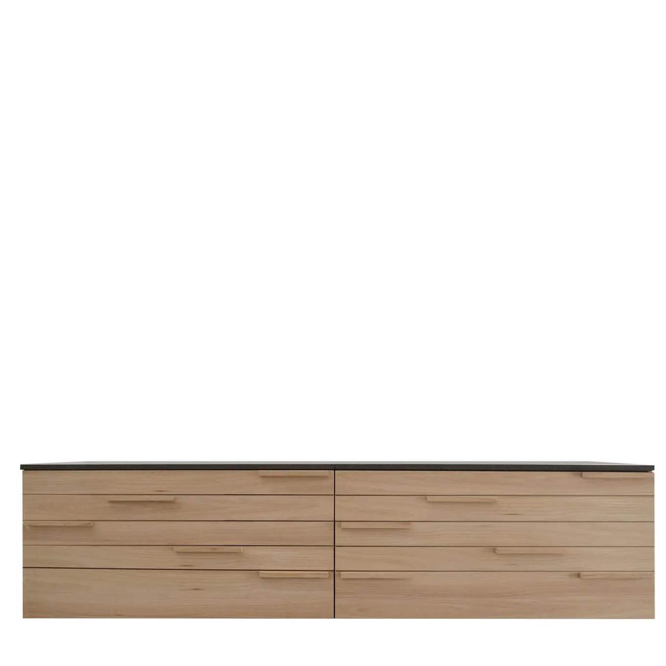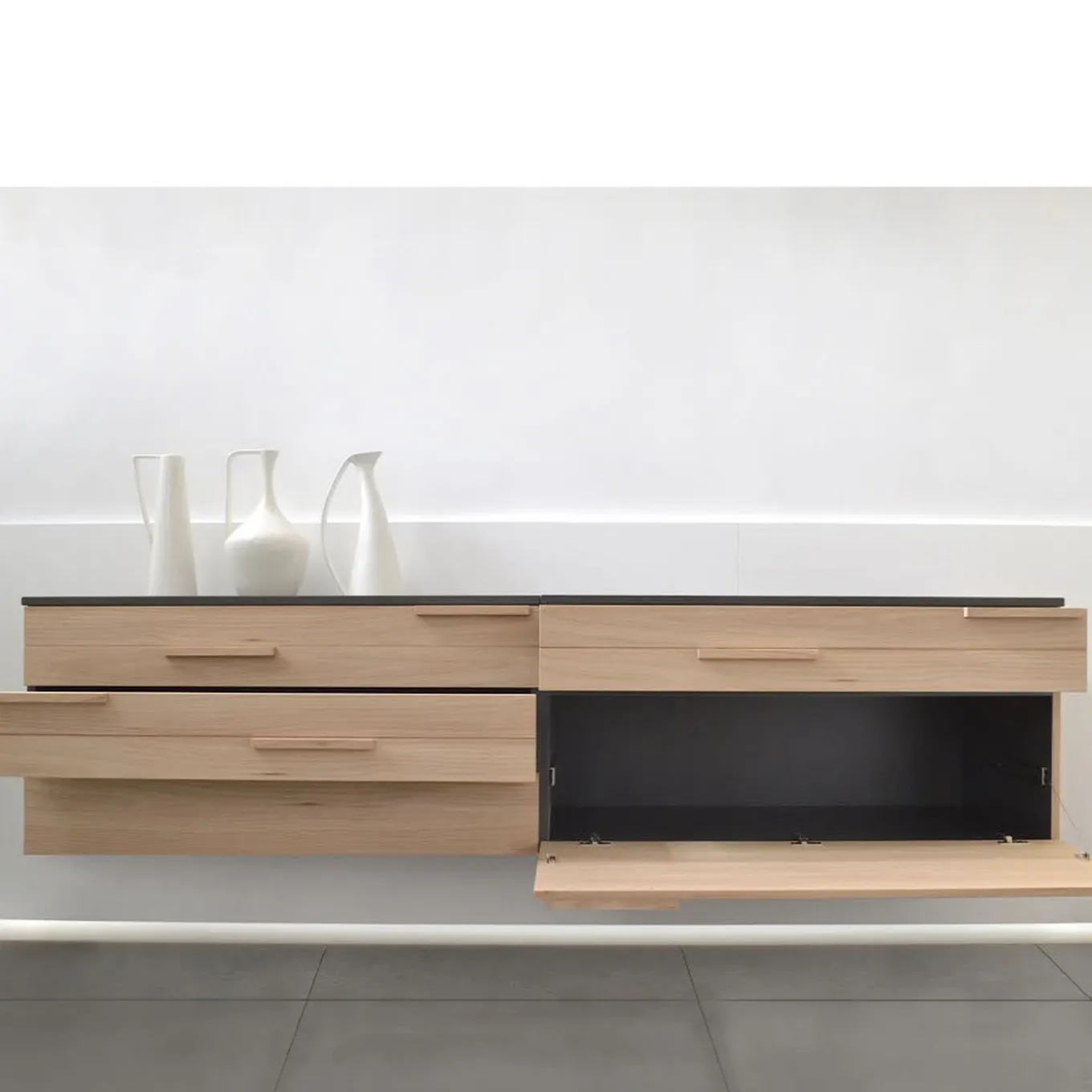 Accento elegante e senza tempo per un arredamento contemporaneo, questa cassettiera ricorda un elemento puro e naturale, abilmente realizzato in legno di olmo, disponibile anche in frassino, noce o rovere. Presenta una vivace combinazione di cassetti di diverse altezze (15 cm, 18 cm, 22 cm). Personalizzabile per dimensioni, numero di cassetti e finiture su richiesta, si prega di consultare il Concierge per ulteriori informazioni.