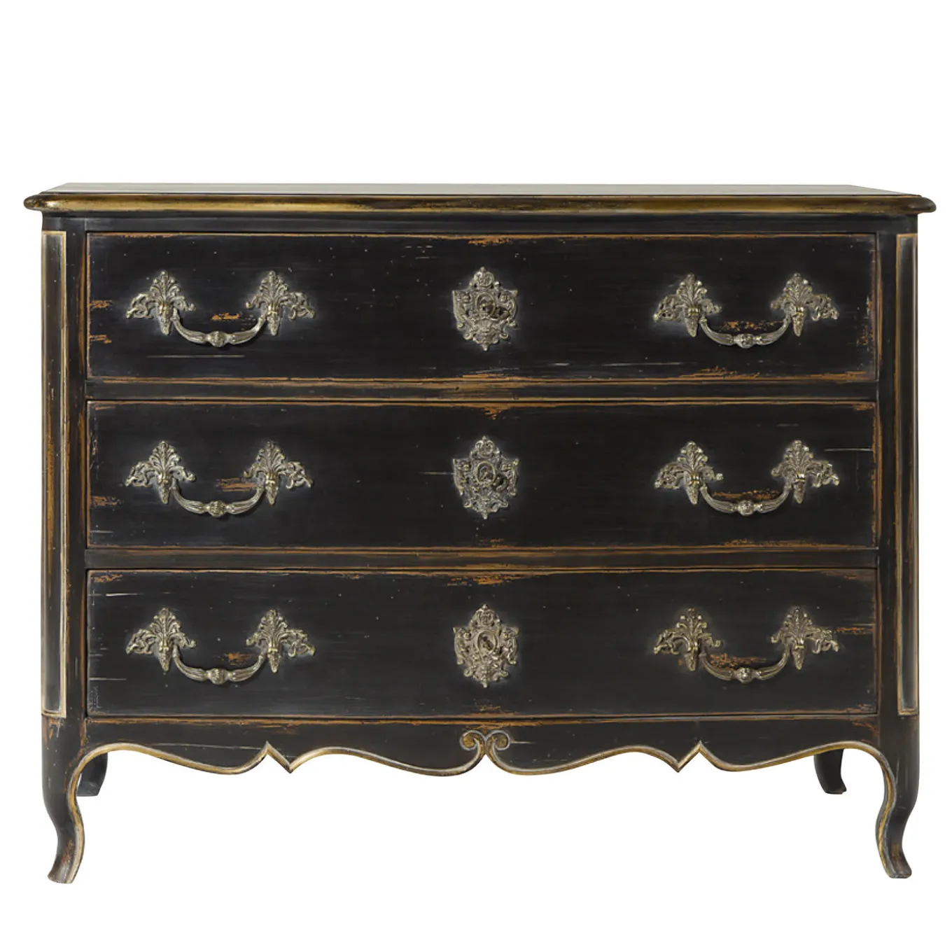 Cassettone Luigi XV, 3 cassetti con serratura, piano in legno.
