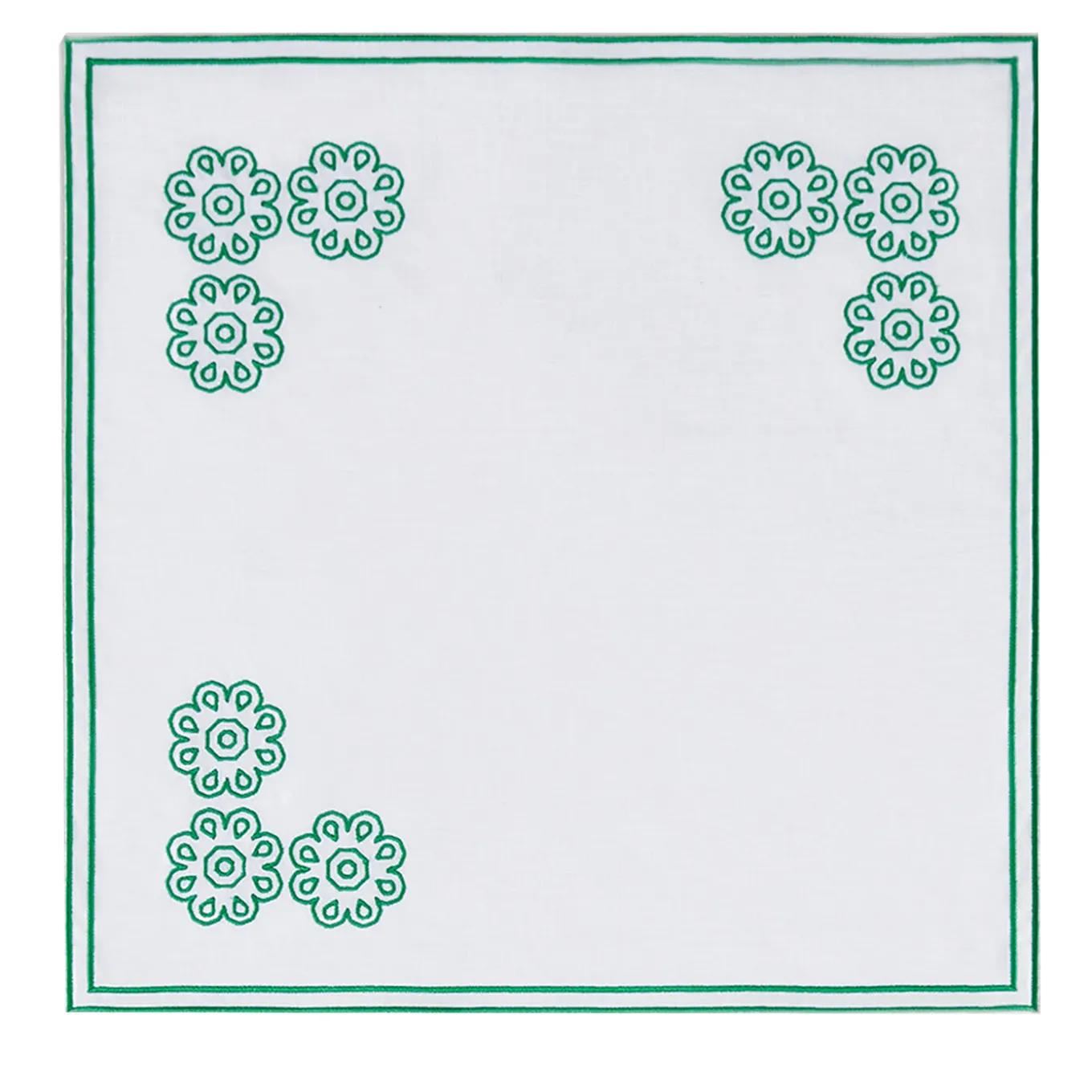 Ideale da abbinare alla tovaglia, questo sofisticato set di due tovaglioli cuciti a mano con lino certificato Masters of Linen è squisitamente ricamato a mano da artigiani pugliesi utilizzando solo cotone verde Mako di alta qualità. Gli elementi floreali sono ricami stilizzati ispirati alla pianta del Castello Svevo, un tempo proprietà dell’imperatore Federico II e situato ad Andria, in Puglia. Verificate il prezzo del set di sei pezzi con il Concierge.
