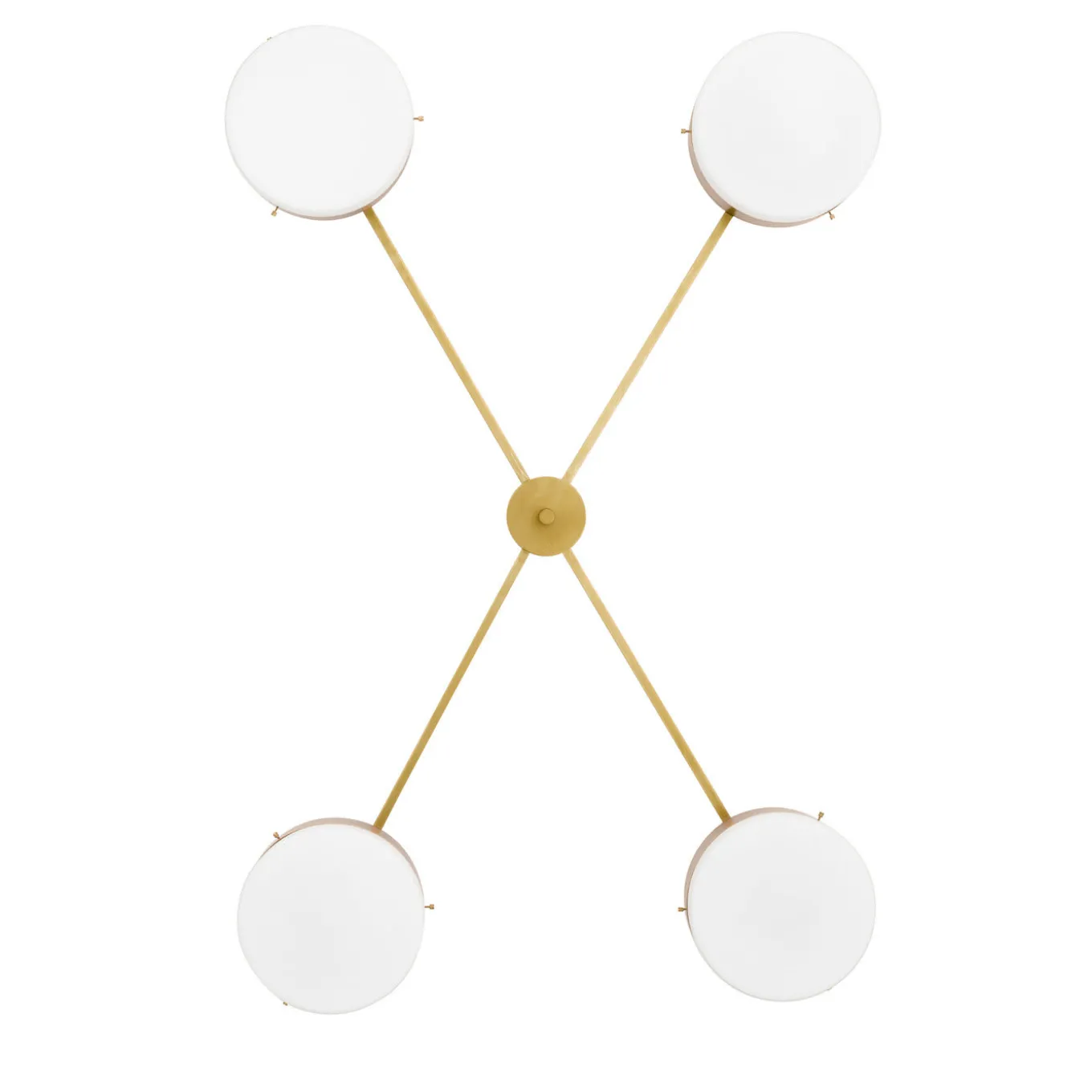 Parte di una serie ispirata all’affascinante immagine di una finestra aperta verso il cielo, questa lampada di pregio può essere utilizzata come lampada da parete o da soffitto per illuminare con calda raffinatezza un interno contemporaneo. Composta da quattro paralumi opalini che supportano lampadine a incandescenza o LED (non incluse), presenta una struttura in ottone disponibile in un’ampia gamma di finiture. Questo pezzo può essere cablato per il Nord America (110V 60 Hz – lampadine con attacco E26) o per l’Europa (220V 50Hz – lampadine con attacco E27). Per ulteriori opzioni di personalizzazione, rivolgersi al Concierge.