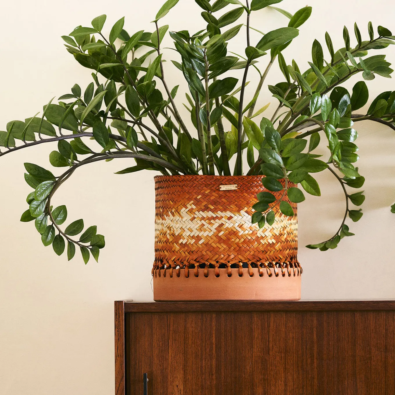 Realizzati a mano, i cesti intrecciati con foglie di palma si combinano elegantemente con le basi in argilla refrattaria, dando vita a un’armoniosa fusione di materiali. Questa sinergia ha prodotto dieci versioni uniche e vivaci, dando vita a cesti in ceramica che trascendono l’estetica per abbracciare la funzionalità. La miscela di materiali offre diversi utilizzi: perfetti come contenitori per piante, pezzi decorativi, organizer per il bagno, accattivanti centrotavola e versatili contenitori per vari oggetti. Ogni cestino è accompagnato da una scatola.