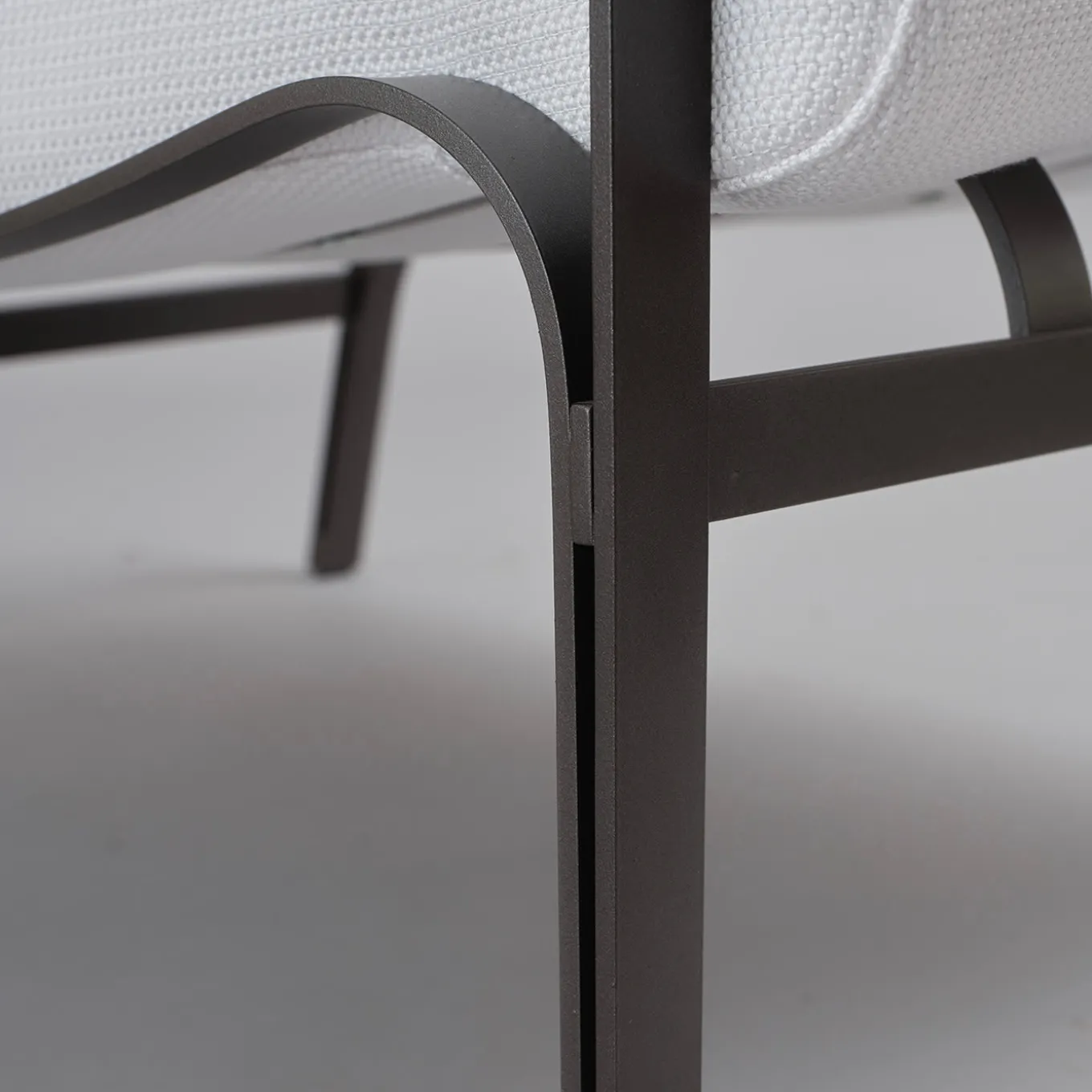 Questa sublime chaise longue è stata concepita pensando alla possibilità di sdraiarsi su un design soffice mentre si osserva un tramonto amalfitano da una terrazza in costiera. Il pregiato tessuto Sunbrella Nattè bianco riveste l’intera seduta imbottita a forma di L, che poggia su una robusta struttura in acciaio inox verniciata a polvere in grigio manganese e delineata da curve sinuose e accattivanti. Le fodere protettive sono incluse.