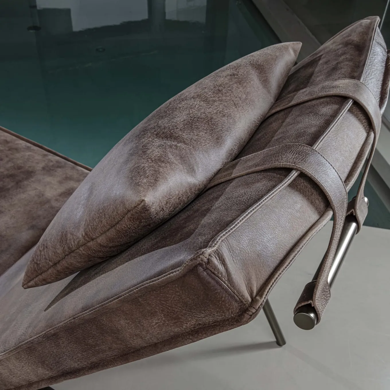 Chaise-longue con base in metallo tubolare, verniciata in diversi colori. Seduta con struttura in acciaio, imbottitura in poliuretano espanso e rivestimento in vari materiali. Cuscino poggiatesta rimovibile con contrappeso verniciato. Tutti i componenti sono disponibili in altri colori. Per maggiori informazioni, contattare il concierge.