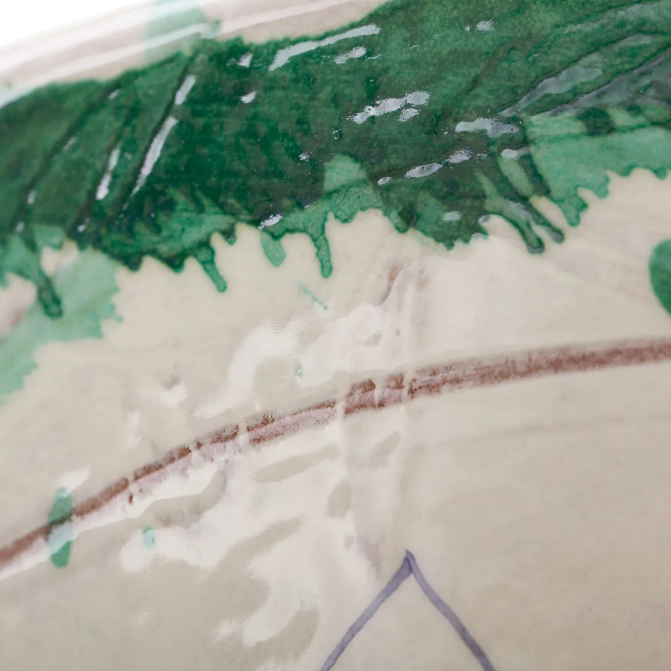 Un originale disegno di pavone emerge nei toni dell’acqua su questa grande ciotola in ceramica interamente realizzata a mano modellando la particolare terra rossa. I maestri ceramisti toscani di Nuove Forme hanno concepito questo pezzo tradizionale come ciotola da portata.