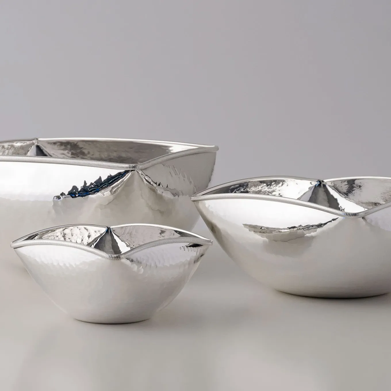 Ciotola Squadrata Rotonda Materia Viva martellata placcata argento