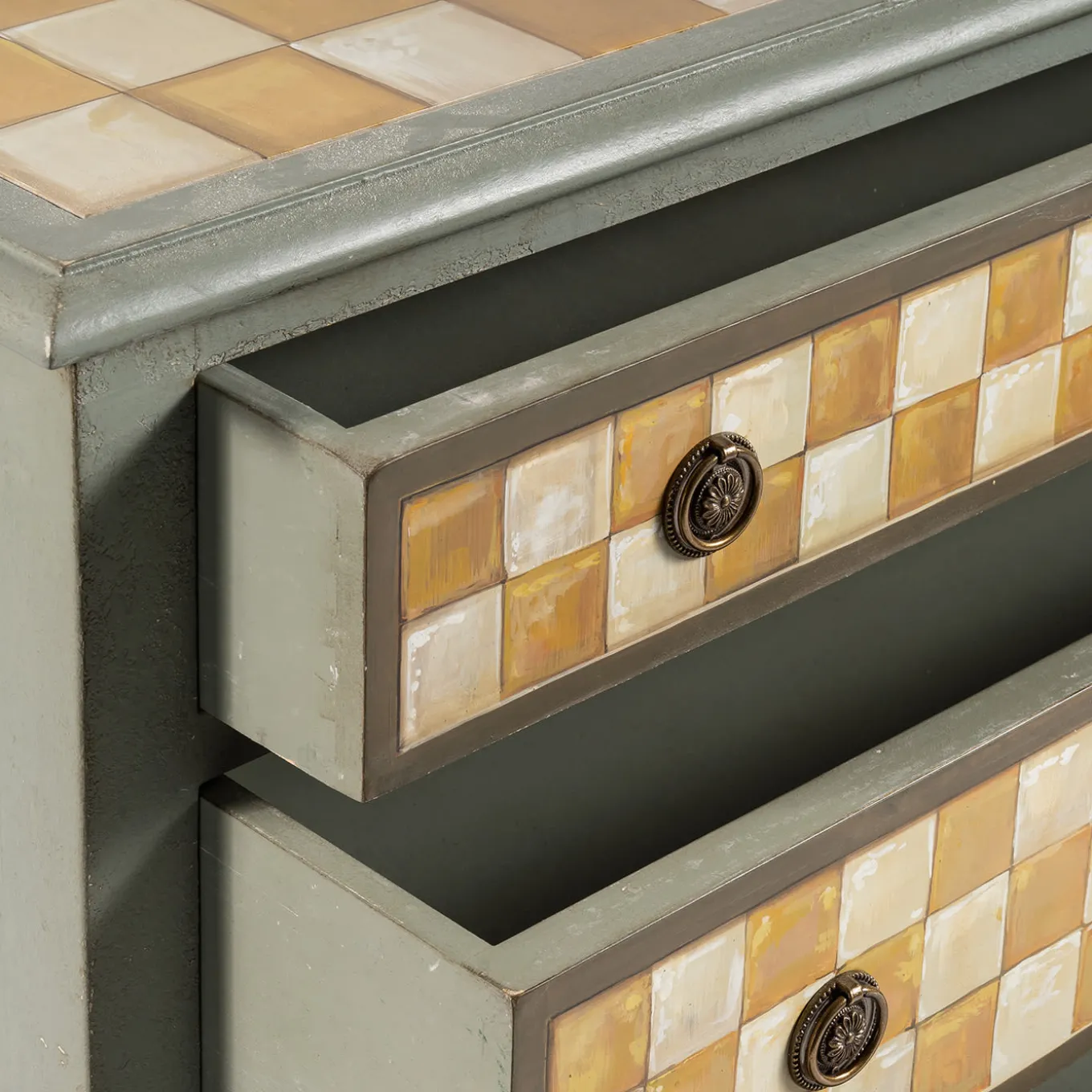 Realizzata su misura, questa cassapanca su misura è ornata interamente a mano con tecniche in stile veneziano. I colori e i disegni possono essere personalizzati per armonizzarsi perfettamente con qualsiasi interno. Realizzato da abili artigiani, ogni pezzo può essere personalizzato nelle dimensioni per soddisfare esigenze specifiche. Su richiesta, è disponibile una protezione aggiuntiva per il piano del tavolo, che garantisce bellezza e funzionalità durature.