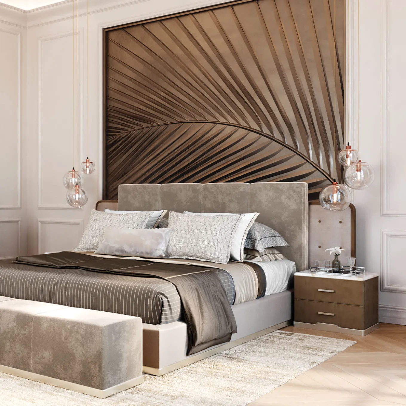 Comodino con struttura in legno, rivestito in pelle Nabuk. Ha un piano in marmo bianco Michelangelo e maniglie in metallo con finitura champagne. Per le opzioni di personalizzazione, contattare il Concierge. Questo pezzo fa parte della collezione Secret Shapes.