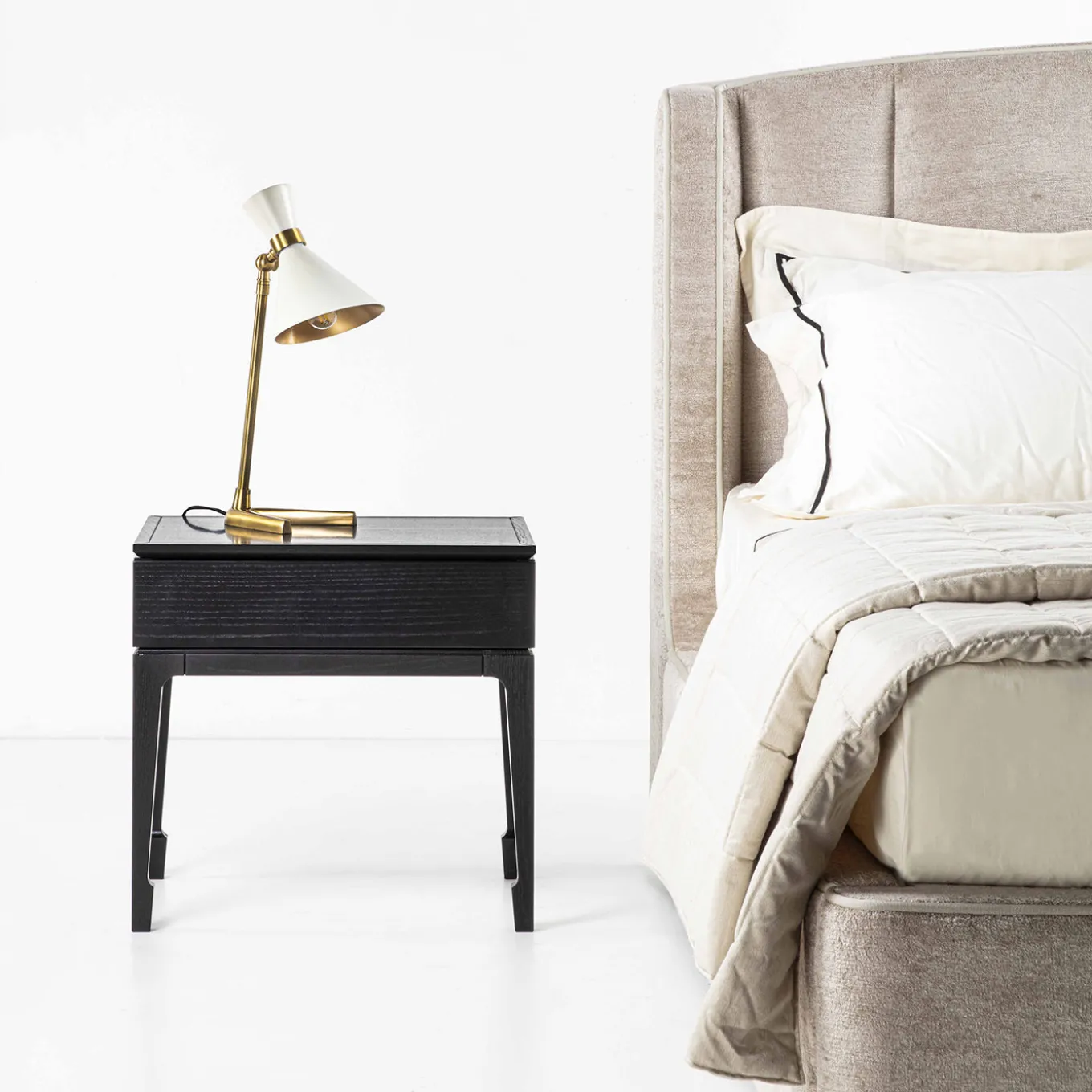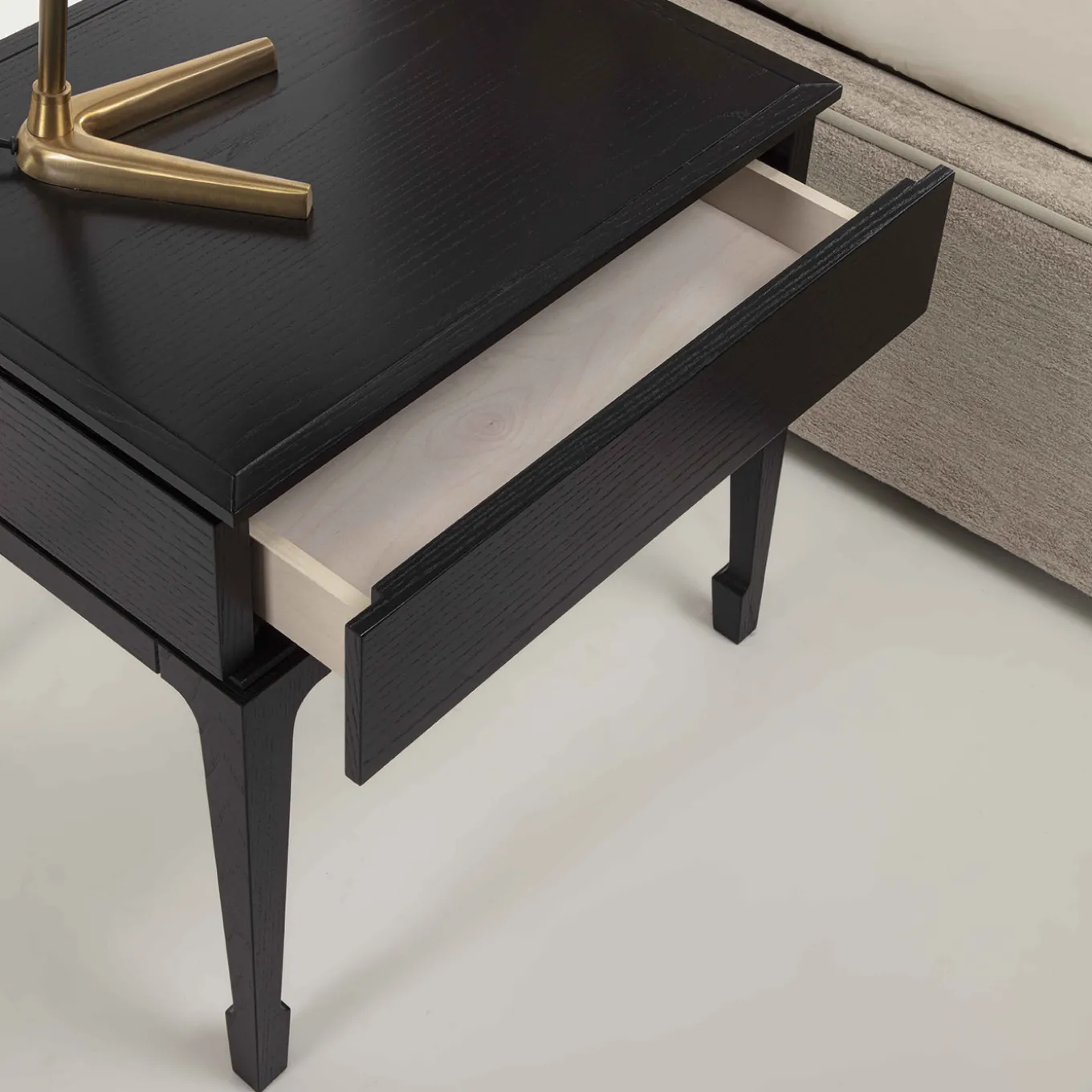 Il comodino Taisha combina con naturalezza lo stile Art Deco con influenze orientali, dando vita a un design distintivo e senza tempo. Questa abile miscela di espressioni stilistiche, provenienti da diverse epoche e aree geografiche, crea un’estetica veramente unica. Le sue linee semplici ma sofisticate, insieme all’uso di materiali di alta qualità, portano un senso di raffinatezza ed eleganza in qualsiasi ambiente della casa.