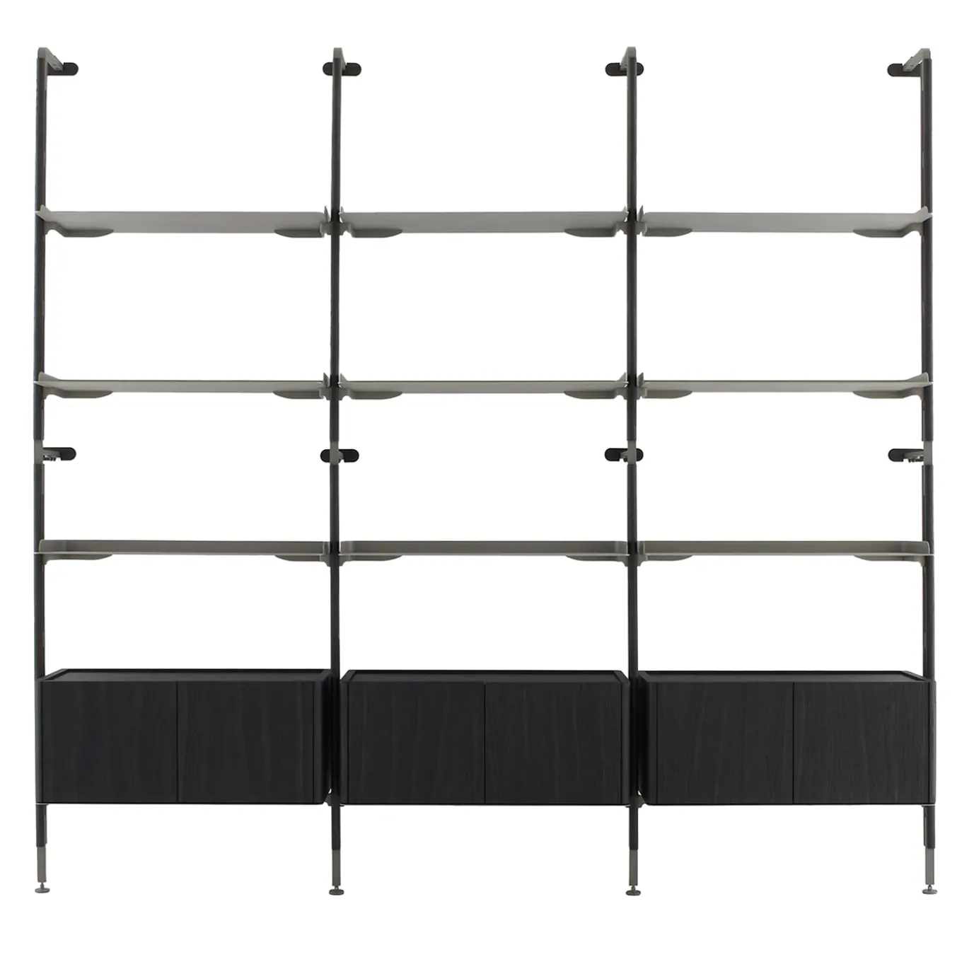 Caratterizzato da una composizione di grande effetto, questo mobile a parete comprende tre moduli realizzati con montanti in rovere massiccio Laguna, completati da nove ripiani in metallo color champagne e da tre contenitori curvi in MDF impiallacciato rovere Laguna. Ancorata a un sistema di montaggio in metallo color champagne e a coperture in legno massiccio, questa libreria modulare si adatta senza sforzo, con ogni unità dotata di due montanti verticali, ripiani personalizzabili e un contenitore inferiore opzionale. Per maggiori dettagli, contattare il Concierge.