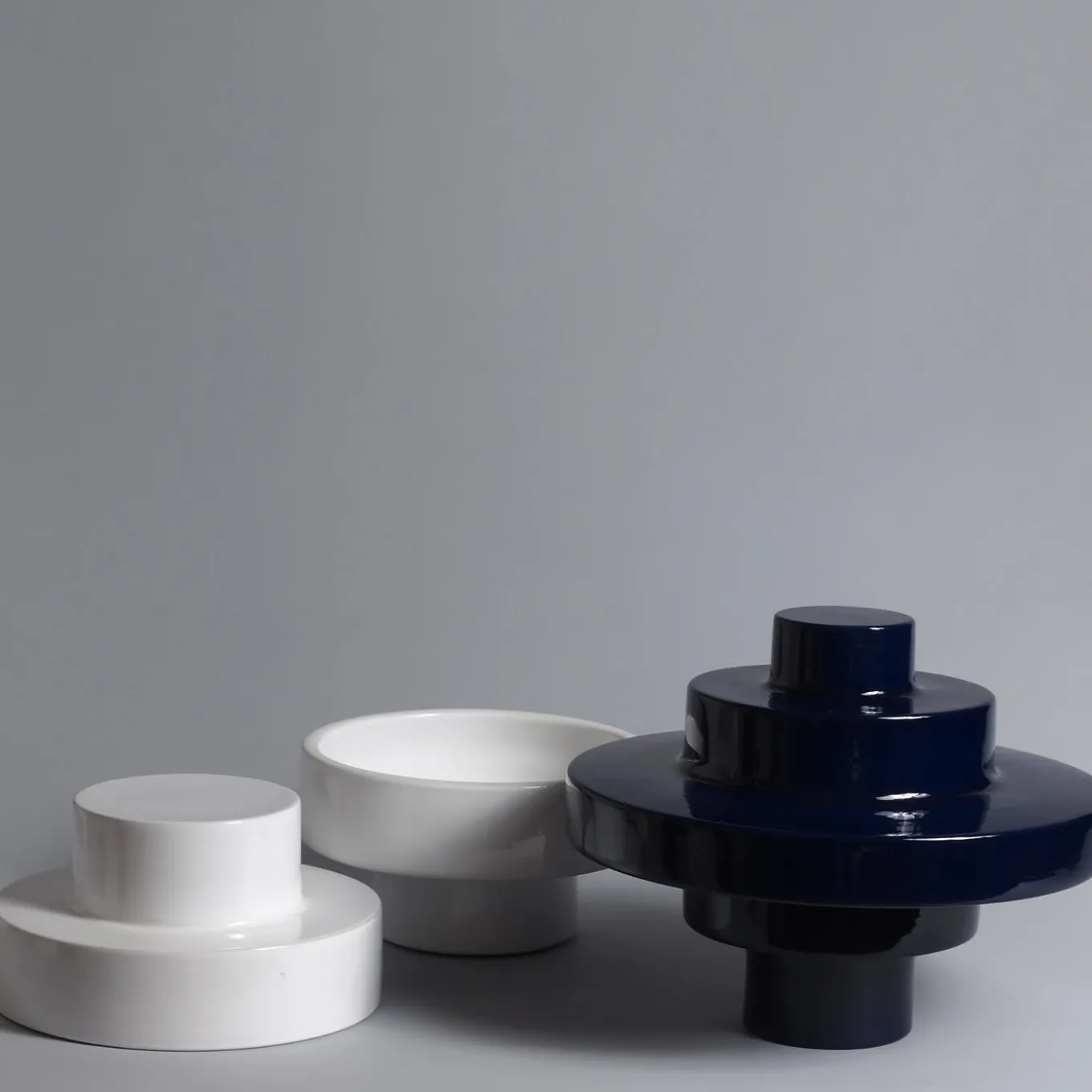 Ispirata al design a terrazze delle ziggurat, questa scultura unica è composta da tre elementi distinti in maiolica smaltata bianca e nera che si incastrano perfettamente per creare la sua silhouette affusolata. Le estremità possono essere estratte dall’elemento centrale, dando vita a due piccoli vasi bianchi e a un elemento nero, simile a una trottola, indipendente. Fa parte della Collezione Composizioni, composta da pezzi unici realizzati a mano secondo la tradizione della ceramica di Faenza, la “Faience” in francese.