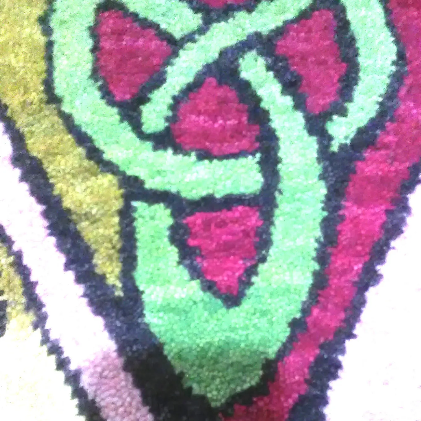 Parte della serie di tappeti Book of Kells, questo pezzo si ispira alle illustrazioni presenti in un manoscritto celtico del VI secolo e reinterpreta questi disegni in chiave moderna utilizzando testi rilevanti per il mondo in cui viviamo oggi. Su questo tappeto, la parola “con” è scritta utilizzando il contorto e animato lettering celtico. Questo pezzo è stato annodato interamente a mano in India da esperti tapparellisti utilizzando una miscela di lana al 90% e seta al 10% ed è personalizzabile nelle dimensioni. È un pezzo senza tempo che si adatta a qualsiasi arredamento.
