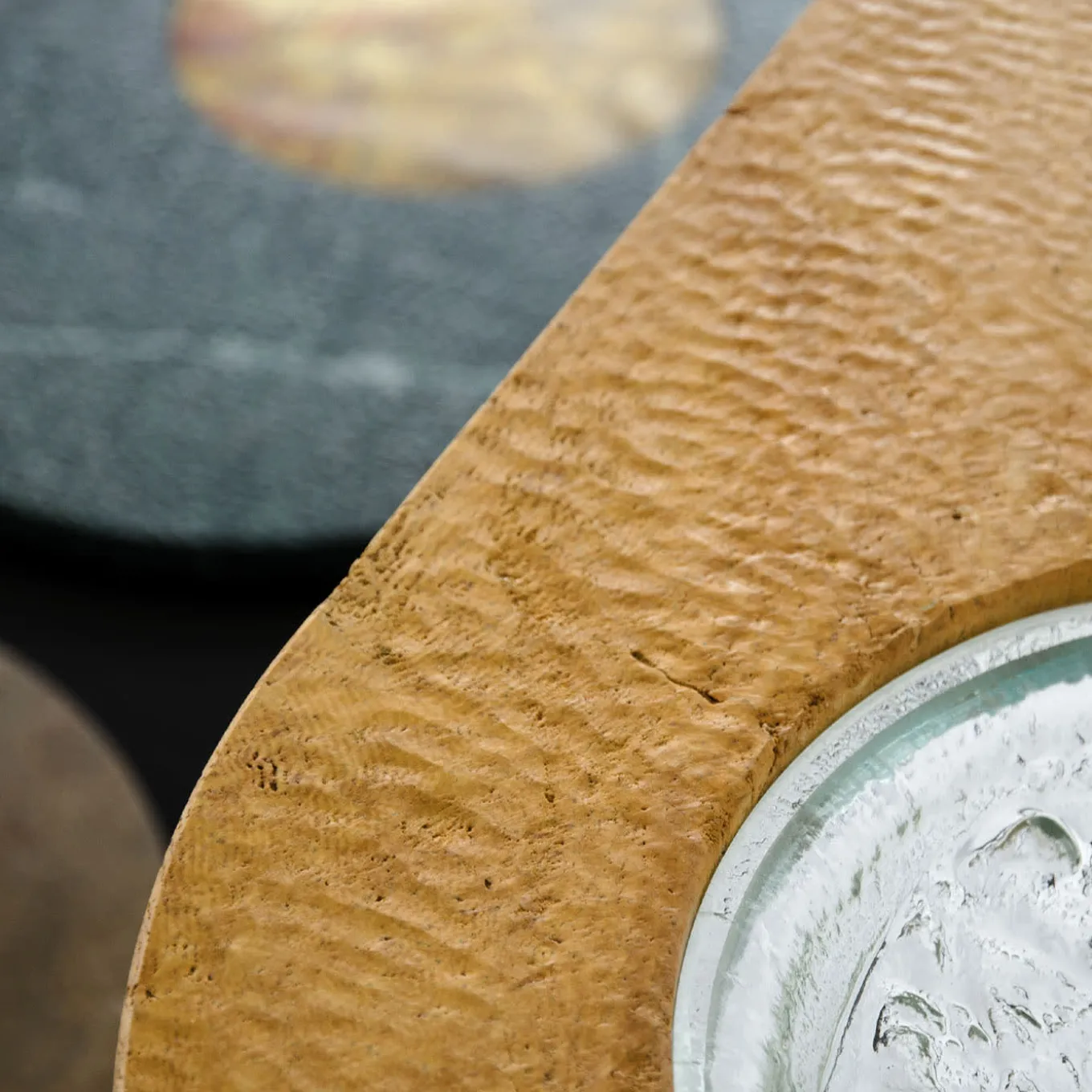 La leggerezza e l’essenzialità dei tratti, unita all’utilizzo di pietre dal forte impatto materico, è il tratto distintivo di questa collezione di consolle. Il minimalismo delle strutture lascia spazio a materiali primari e tattili. La lavorazione bocciardata delle pietre naturali conferisce un aspetto estremamente naturale ai materiali, di sicuro impatto scenico.
