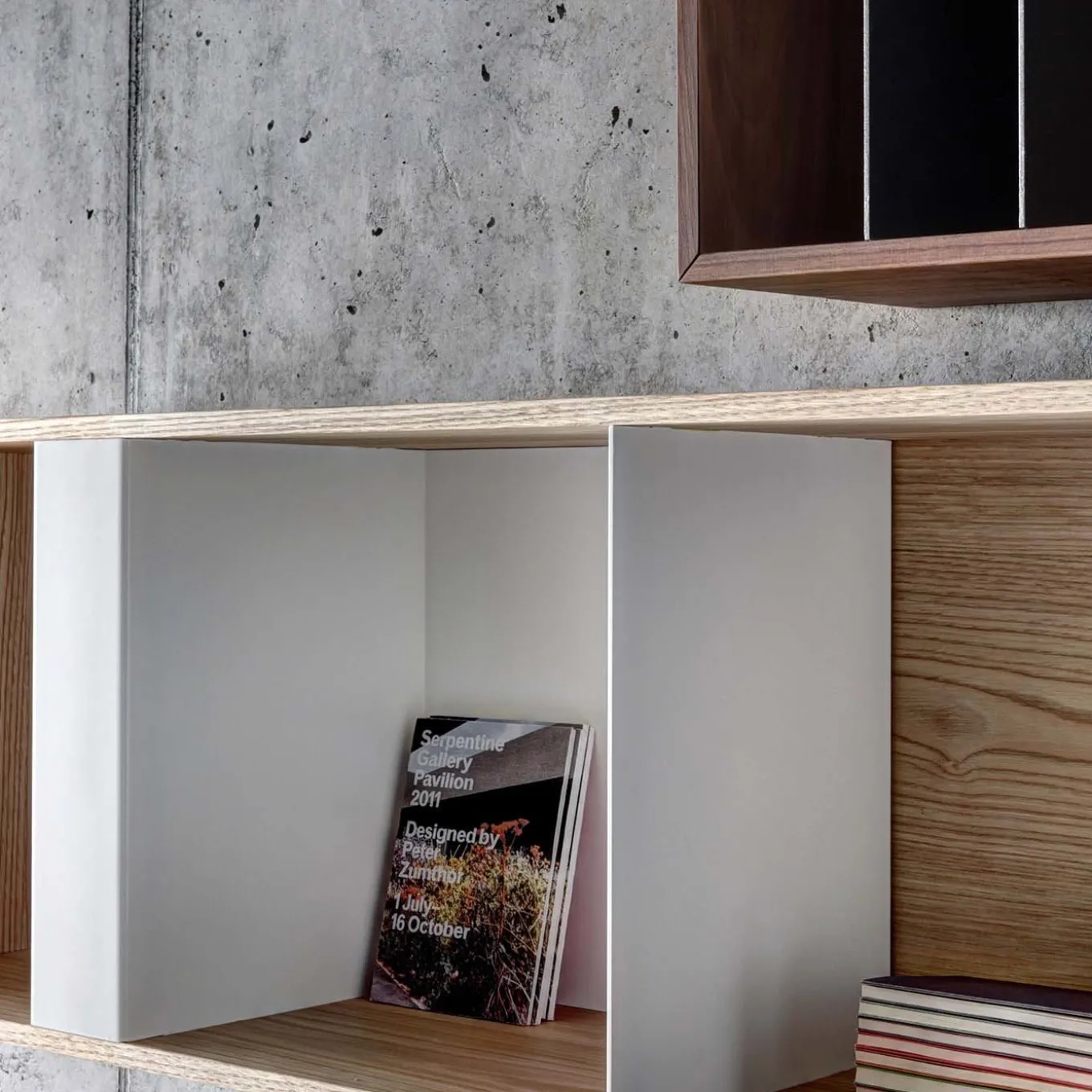 Progettato da Act_Romegialli, questo elegante oggetto d’arredo funzionale aggiungerà un accento suggestivo a una parete moderna, fornendo al contempo un eccellente spazio di archiviazione ed esposizione in un soggiorno, una cucina o un bagno. La sua struttura in noce, spessa 13 mm, è sostenuta e divisa da elementi verticali in acciaio verniciati di bianco che contrastano con il calore delle venature del legno. Il gioco tra i volumi pieni e vuoti di questo pezzo offre una decorazione raffinata a qualsiasi ambiente. Sono disponibili altre misure, si prega di chiedere al Concierge per i dettagli.