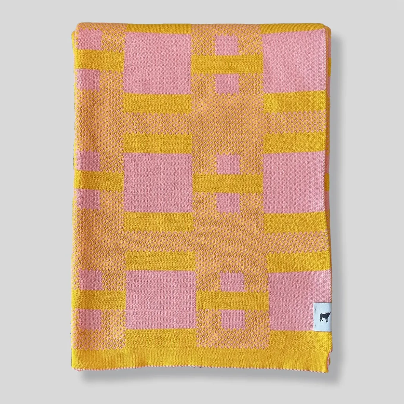 La sapiente tessitura di pregiati filati di cotone a quattro capi in una raffinata trama jacquard piqué ha dato vita a questa superba coperta. Il suo accattivante motivo geometrico è il risultato di uno speciale progetto computazionale che utilizza il codice Max/MSP. Il vibrante giallo senape incontra il rosa e il verde pastello per una dichiarazione cromatica che eleva il fascino del pezzo. È disponibile anche una variante arancione.