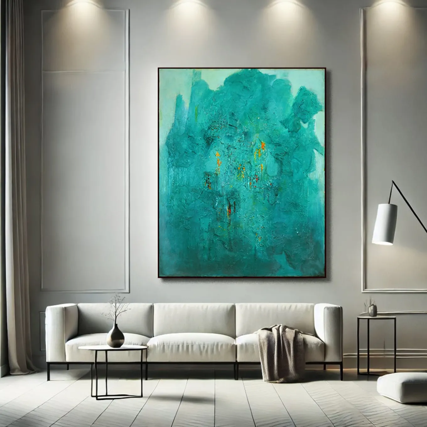 “Correnti Silenziose” è un’opera d’arte accattivante che invita gli spettatori a un viaggio nella profondità e nel silenzio, evocando la calma di spazi naturali e misteriosi. I toni del verde smeraldo si fondono perfettamente con accenni di blu profondo, giallo e rosso, creando un gioco di contrasti che suggerisce correnti nascoste e vibranti. La superficie strutturata aggiunge un senso di movimento e vitalità. Ideale per interni moderni o minimalisti, questo dipinto diventa un sofisticato punto focale. Consegnato con un certificato di autenticità.