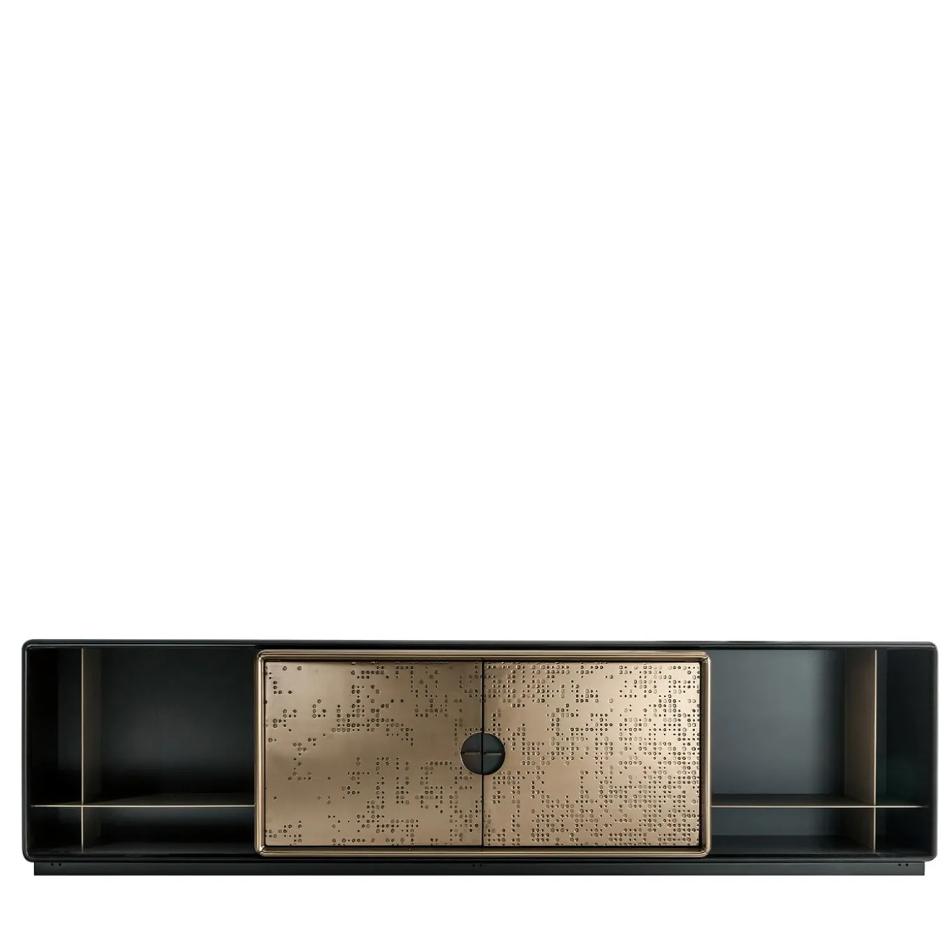 Grazie all’ampio spazio di archiviazione e alla combinazione equilibrata di vani aperti e chiusi, questa credenza è un complemento raffinato per gli arredi moderni. Le ante metalliche a battente sono caratterizzate dalla cosiddetta texture “unlimited” e si aprono per rivelare un ripiano e un cassetto. Gli interni sono rifiniti con vernice metallizzata delabré, mentre il resto della struttura vanta una lussuosa finitura in patina di bronzo vintage. Per richieste di personalizzazione, contattare il Concierge.
