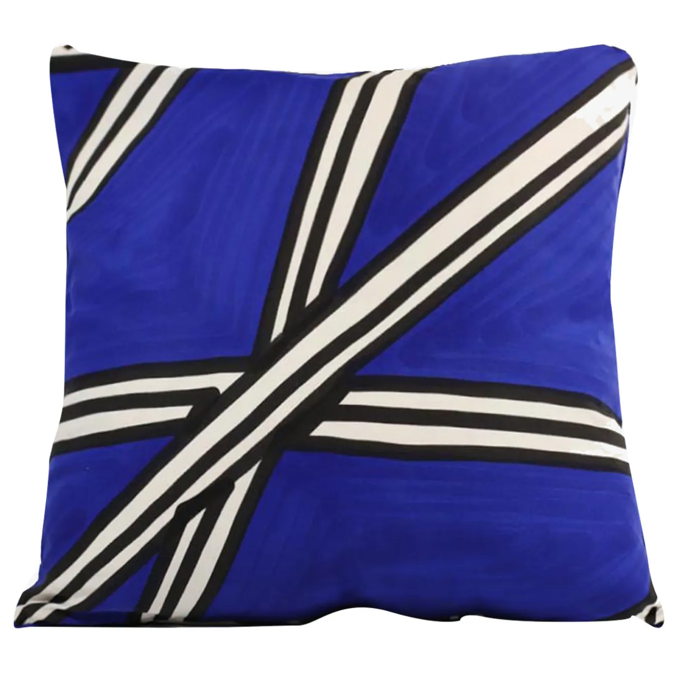 Cuscino interno blu ottico dipinto a mano. 100% cotone. Questo cuscino moderno, accattivante e a righe irregolari aggiungerà più carattere alla vostra casa. In interni, su letti, poltrone, divani e sedie, i cuscini offrono sostegno, riposo e un ricco senso dello stile. Il design unico e il materiale di alta qualità rendono questo cuscino un must per chi ama le atmosfere vivaci e contemporanee.