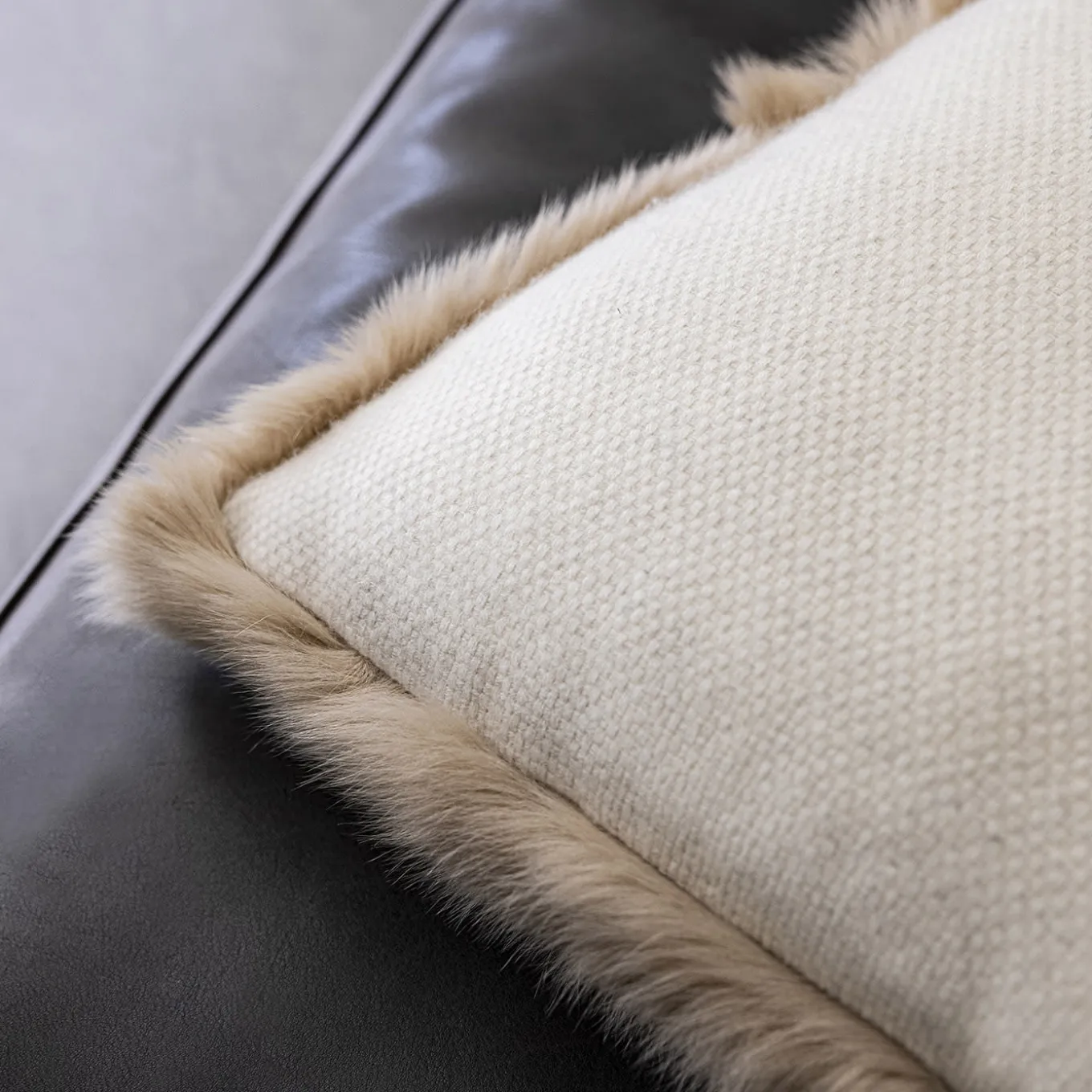 Peluche e glamour sono sintetizzati in modo impeccabile in questo cuscino unico, una soluzione superba per valorizzare qualsiasi tipo di interno con un pizzico di comfort e di stile in più. La ricca imbottitura interna, che lo rende voluminoso, è avvolta in un rivestimento double-face in cui un lato è in cashmere e l’altro in pelle di pecora, per un effetto tattile davvero soffice. Imbottitura inclusa.