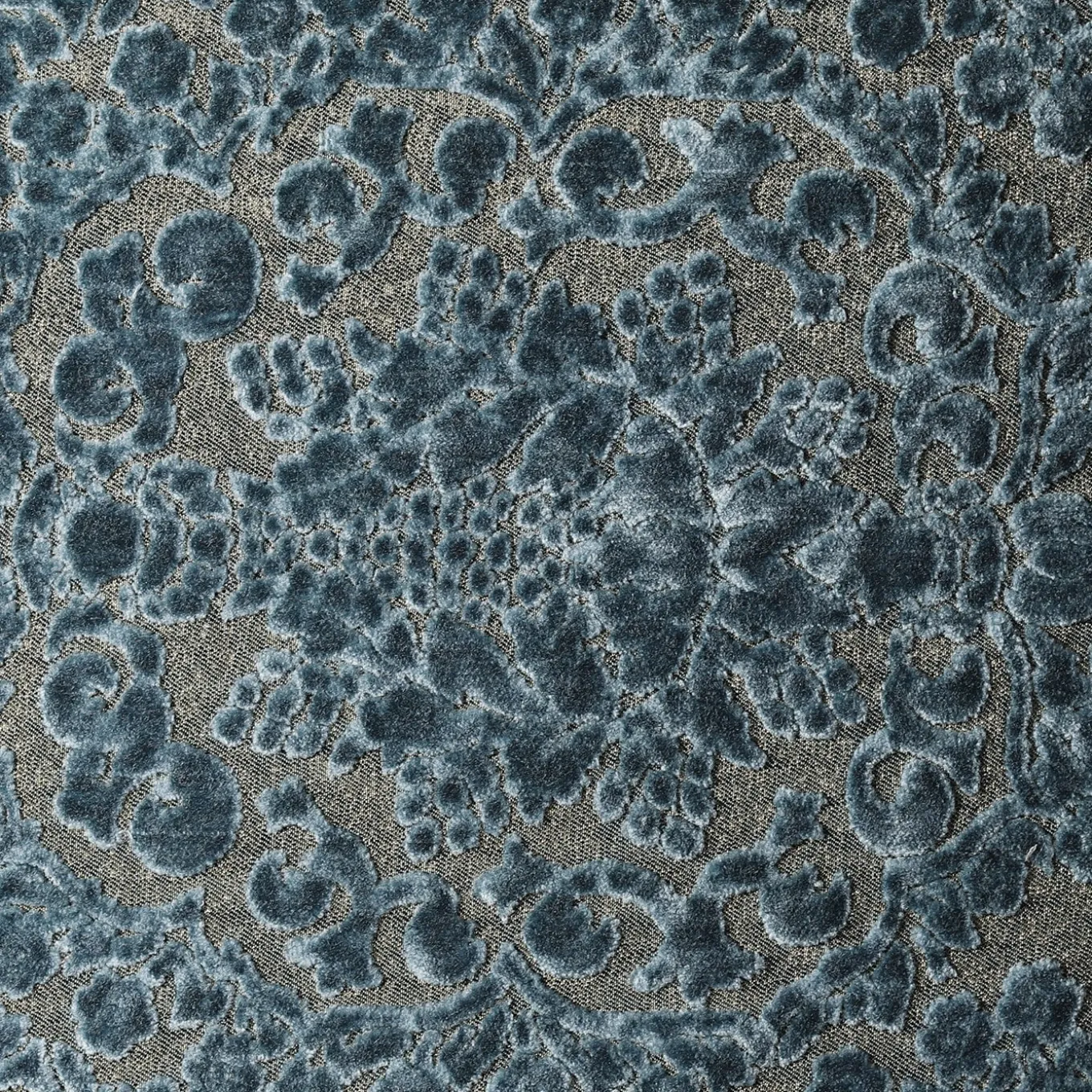 Naiadi ricorda la grotta delle ninfe d’acqua dolce. Il velluto jacquard fluisce dal fondo oro. Il blu dell’acqua intacca lentamente la pietra, creando spazio per i tesori nascosti di Ulisse.