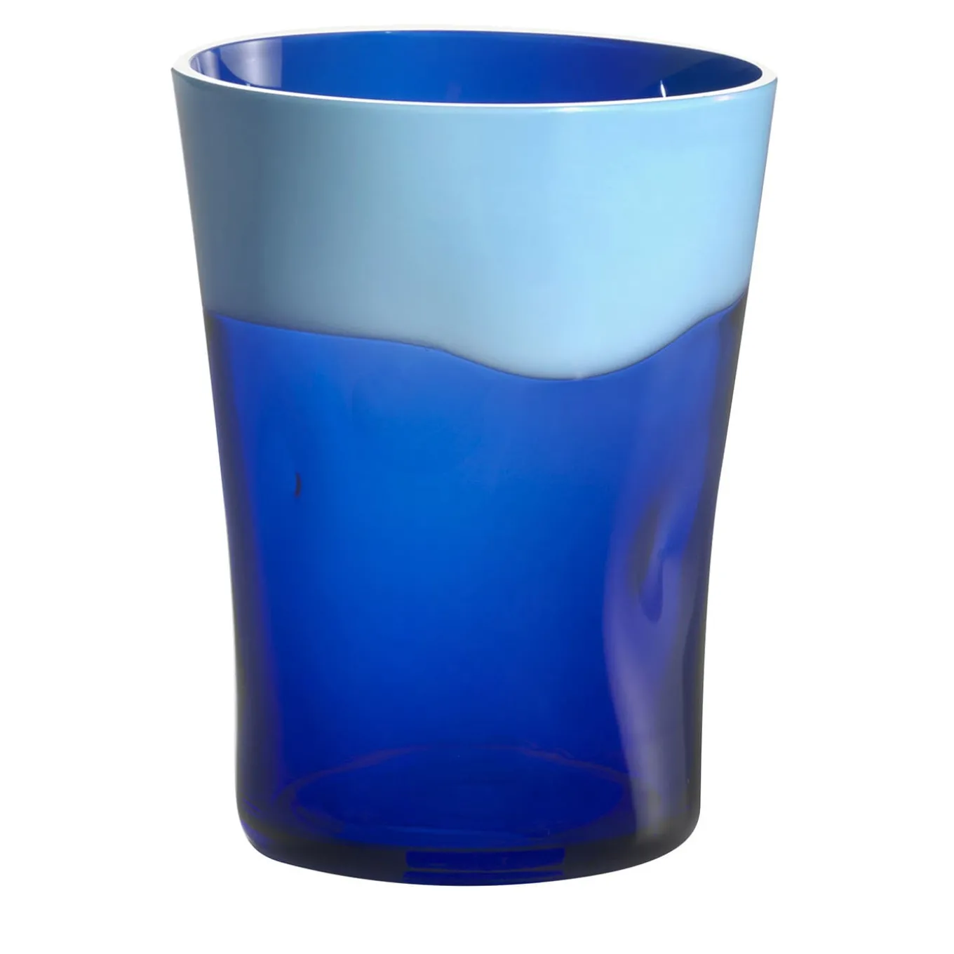 Lievi e volute ammaccature conferiscono a questo prezioso vetro di Murano soffiato a bocca un’intelligente qualità ergonomica e un inconfondibile tocco contemporaneo. Parte della Collezione Dandy di Stefano Marcato, è qui proposto in una vivace tonalità di blu che contrasta armoniosamente con una fascia azzurra fresca e irregolare proprio sotto il bordo. Disponibile in più opzioni di colore.