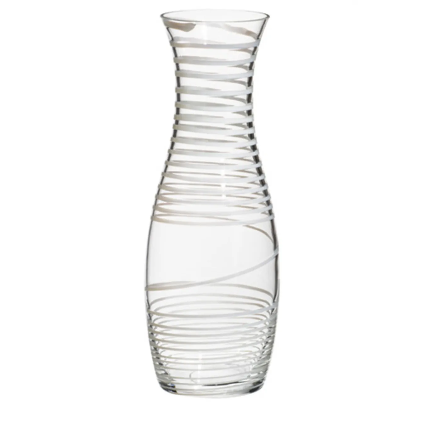 Omaggio all’elegante trasparenza del cristallo di Murano soffiato a bocca, questo magnifico decanter sarà un pezzo forte e affascinante per una tavola da pranzo raffinata. Caratterizzato da una silhouette affusolata e slanciata, ornata da un’affascinante spirale bianca, questo elegante pezzo appartiene a una serie esclusiva di design firmati e datati creati nel 2007 da Carlo Moretti.