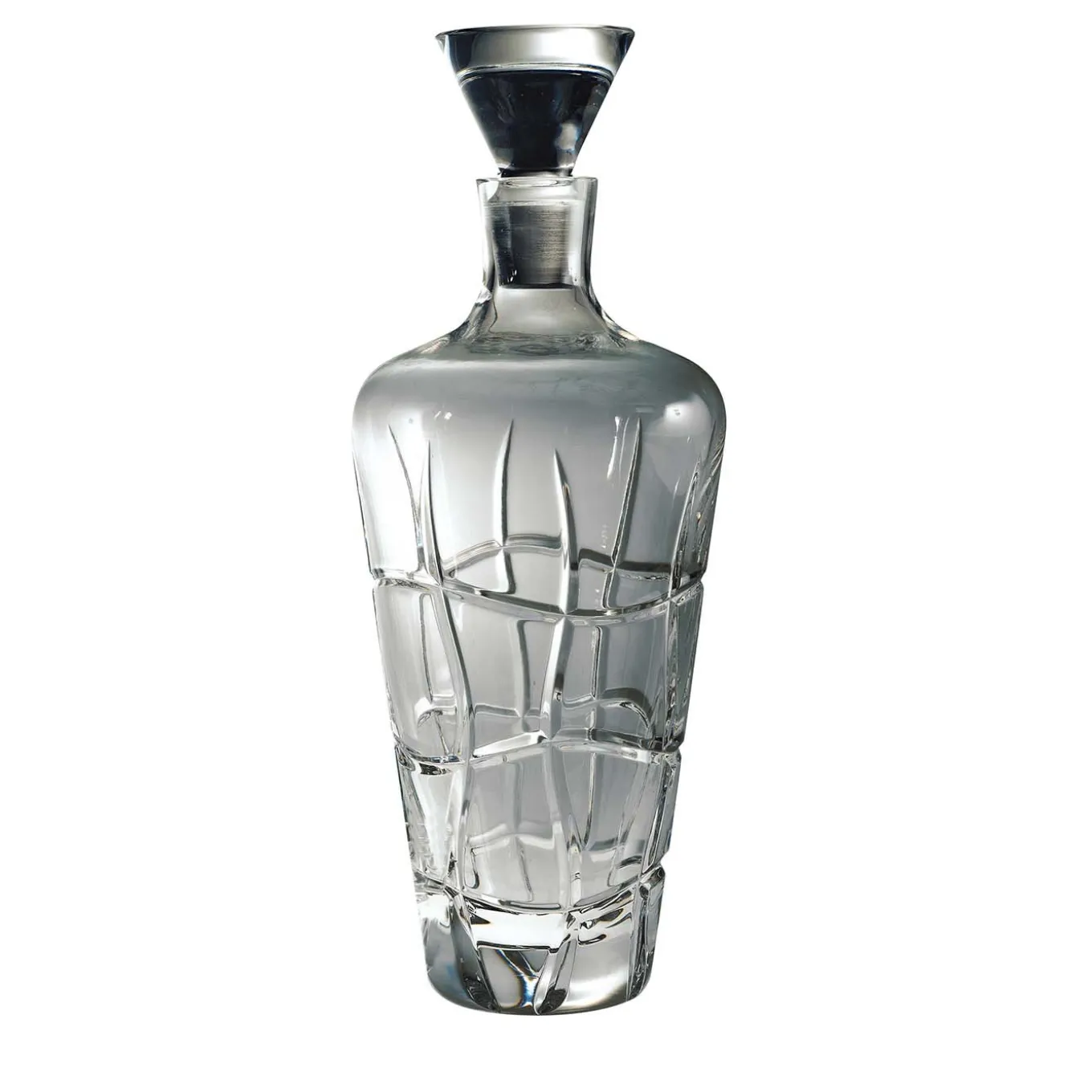 Questo elegante decanter è un’aggiunta superba a una casa moderna. Sia per servire il vino a tavola che per conservare i liquori in una credenza o in un mobile bar, questa bottiglia farà la sua figura. È stata realizzata in cristallo trasparente e la sua silhouette conica è ornata da una serie di tagli verticali irregolari, attraversati da onde orizzontali per un effetto dinamico di forte impatto visivo. Questo pezzo è sormontato da un tappo e ha una capacità di 85 cl.
