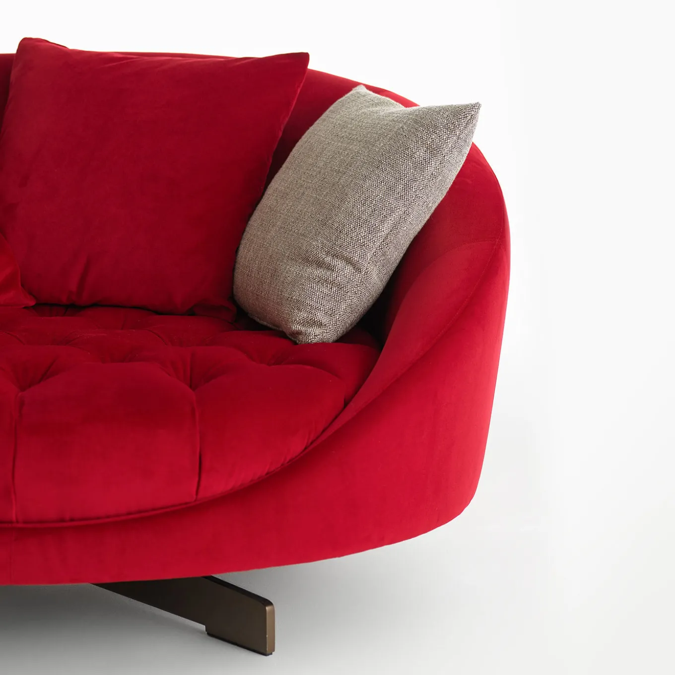 Stupendo divano imbottito di Studio MA, caratterizzato da un’allure morbida e calda che invita al comfort e al relax, questo splendido pezzo sarà il protagonista di un salotto contemporaneo. Poggiato su una base girevole, è caratterizzato da una forma arrotondata che avvolge una splendida seduta con ciuffi, interamente rivestita in velluto rosso. I cuscini non sono inclusi e possono essere aggiunti su richiesta, chiedendo al Concierge i dettagli.