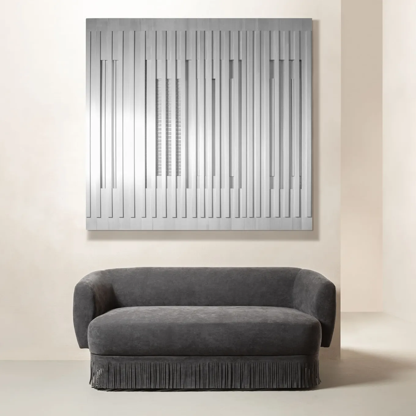 Fondendo volumi massicci con curve assolutamente morbide e avvolgenti in un’accattivante armonia estetica, questo divano è un perfetto connubio tra design pulito ed eleganza senza tempo. La struttura elegante e geometrica è arricchita da cuscini e frange in pelle imbottita. Personalizzabile in dimensioni e colori su richiesta, si prega di contattare il Concierge per ulteriori dettagli.