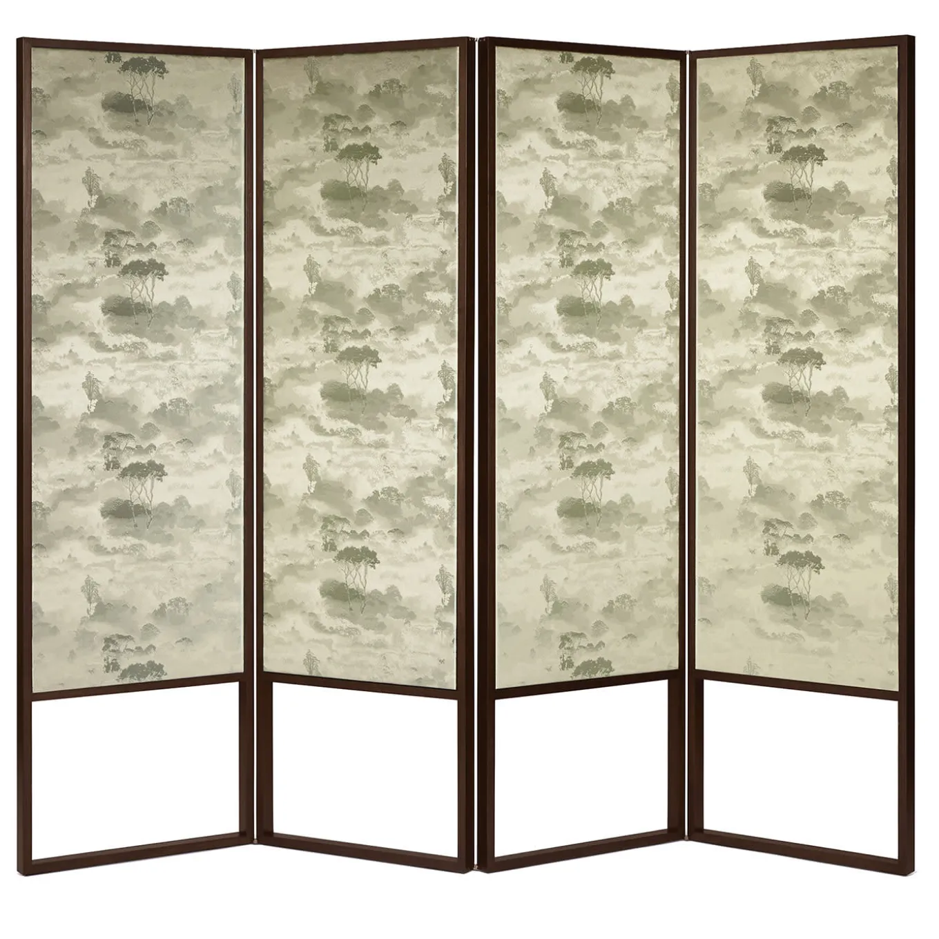 Il paravento Ombra è composto da quattro pannelli in tessuto Okinawa. La parte inferiore di ogni pannello è vuota e in noce canaletto, conferendo a questo pezzo decorativo un aspetto più leggero. Le dimensioni del singolo pannello sono 55x4x180cm. Per ulteriori informazioni, contattare il Concierge.