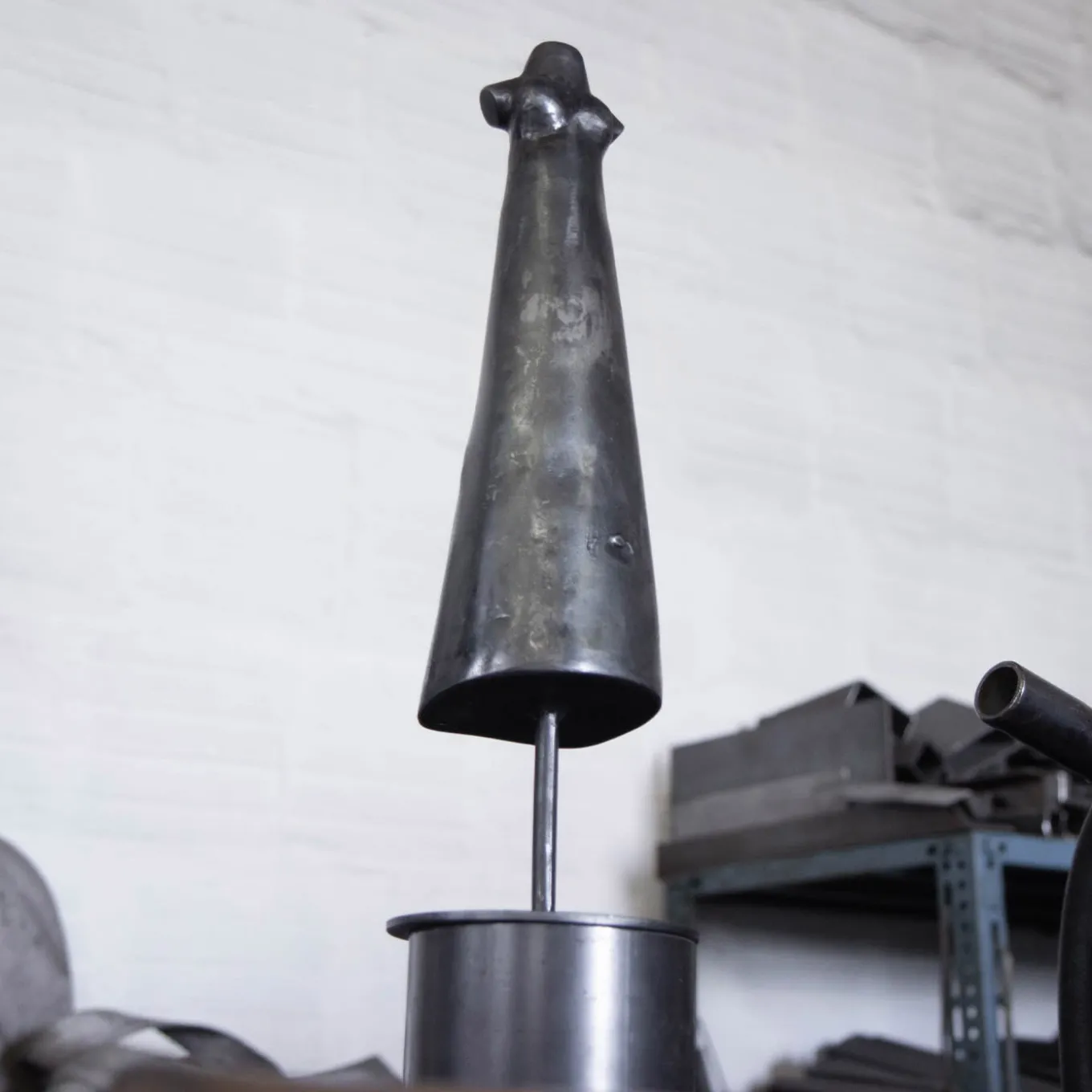 Controparte della scultura “Fat Woman N.5”, questa singolare opera esplora ulteriormente il carattere relativo della bellezza. Una tranquilla base in tondino sostiene la sua sottile e stilizzata silhouette antropomorfa, ottenuta modellando un’unica lastra di ferro direttamente sull’incudine. Con questo significativo oggetto d’arte, l’artista Lorenzo Quadalti afferma che la bellezza non sta nelle icone da imitare, ma nella ricerca di dettagli unici.