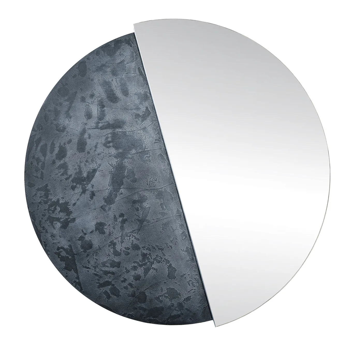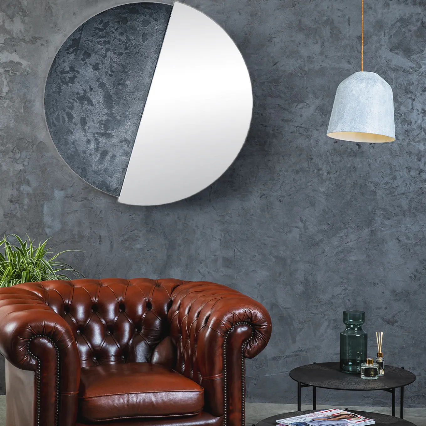 Uno grande specchio da parete rotondo, caratterizzato da una superficie riflettente semicircolare abbinata a un pannello decorativo semicircolare finito con resina spatolata argentata. Progettato per una rotazione a 360 gradi, questo pezzo introduce asimmetria e contrasto, mescolando funzionalità con espressione artistica. Ogni specchio è una creazione unica, certificata e numerata per autenticità, offrendo un’affermazione estetica distintiva per interni contemporanei. Disponibile in diverse finiture e in una versione più piccola da 90 cm. Si prega di contattare il Concierge per ulteriori informazioni.