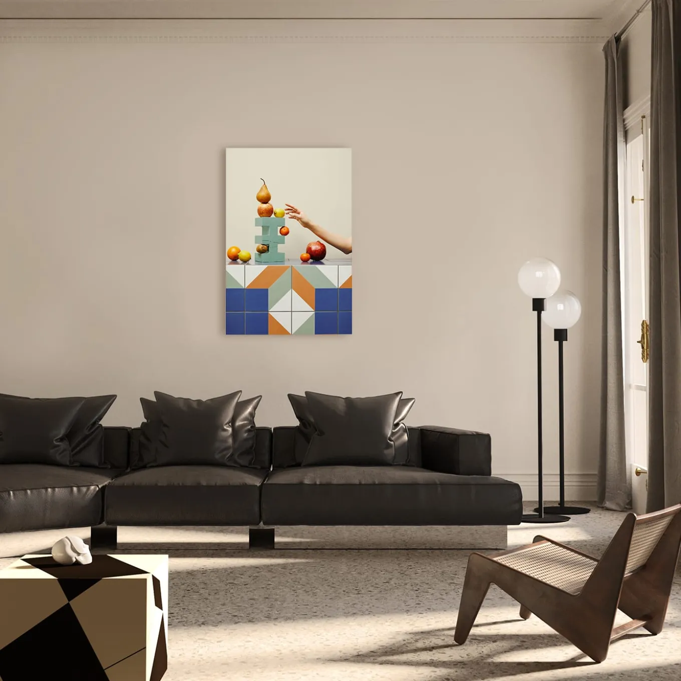 L’immagine rappresenta una natura morta. Il piano del tavolo è ricoperto da piastrelle Margherita, disegnate e progettate da Natalie Du Pasquier in collaborazione con Mutina Ceramics. La fotografia viene stampata su supporto FineArt da un file digitale. Si tratta di un’edizione limitata di n. 5 esemplari. La cornice non è inclusa.