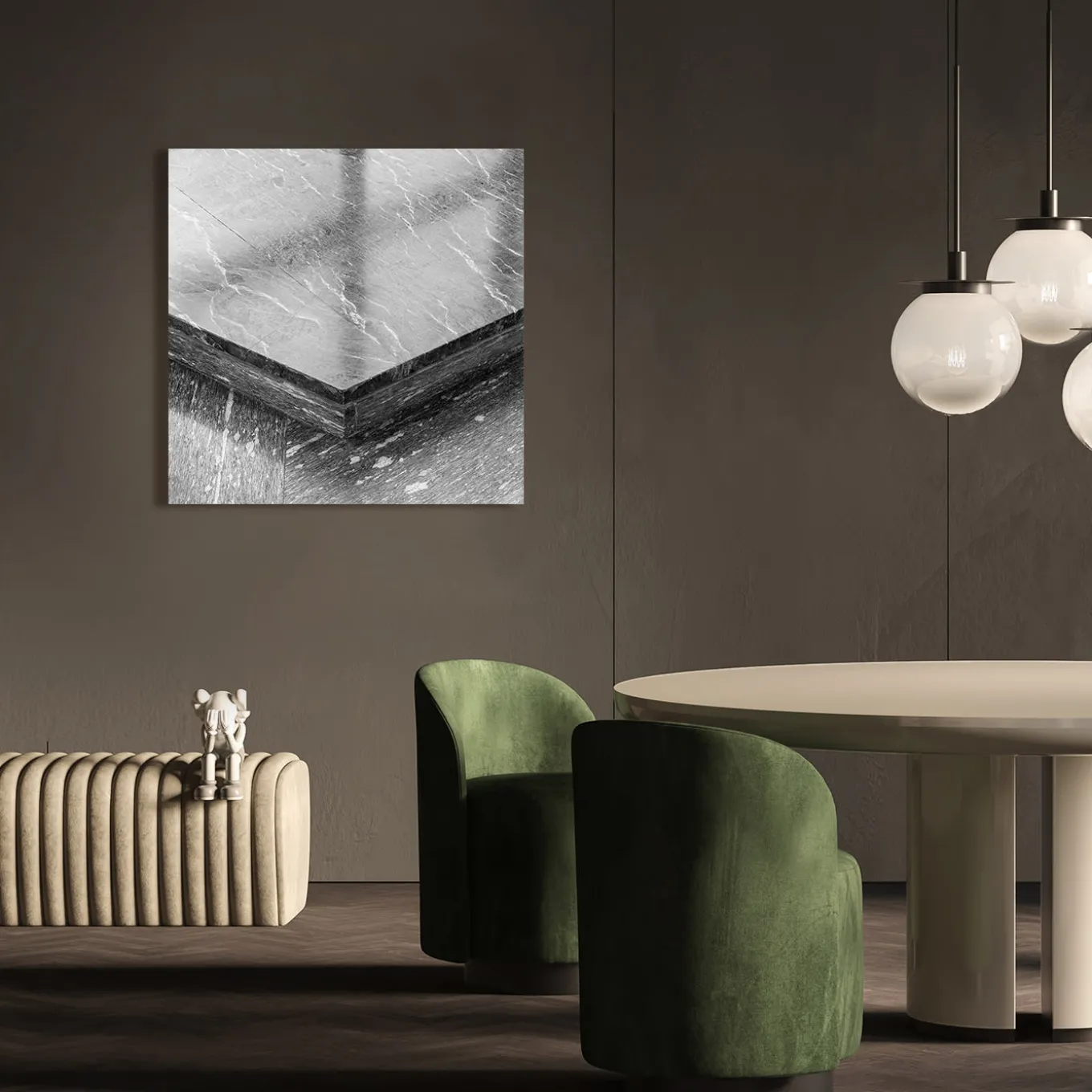 Questa fotografia in bianco e nero di Giulio Boem è un primo piano di una splendida superficie marmorea all’interno dello storico edificio milanese Galleria Passerella 2 progettato da Gio Ponti in collaborazione con Antonio Fornaroli e i fratelli Soncini nel 1950. Reso in bianco e nero, mostra uno straordinario gioco di texture e geometrie. Si tratta di un’edizione limitata di n. 10 esemplari. Consegnato con certificato di autenticità. Cornice non inclusa.