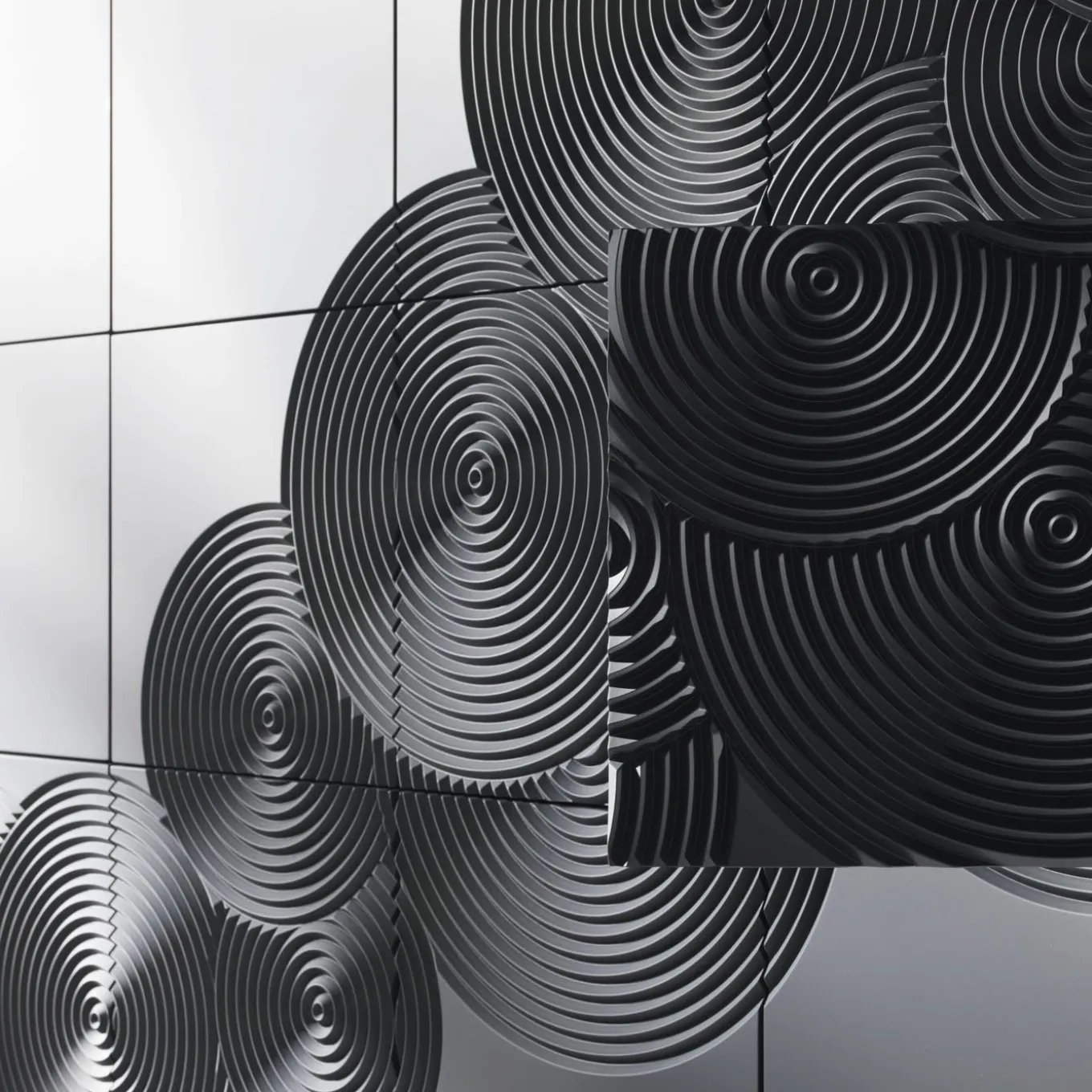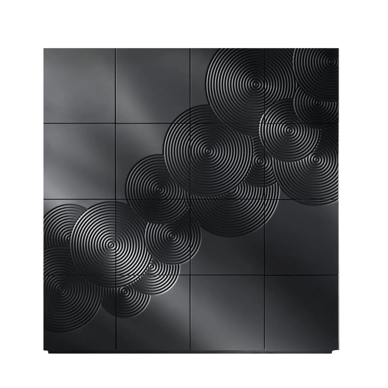 Questa credenza, composta da due moduli da sovrapporre, è elegante e sofisticata. La sua struttura è realizzata in MDF, acronimo di medium-density fiberboard, una fibra di legno densa e resistente. La superficie laccata nera opaca vanta una sorprendente finitura lucida e una decorazione a bassorilievo di cerchi concentrici che attraversano diagonalmente i 16 riquadri. Questa elegante creazione presenta un totale di 8 ante, ognuna delle quali è composta da due quadrati accoppiati verticalmente. Su richiesta e con un costo aggiuntivo, la credenza può essere personalizzata con un’unica apertura per ogni quadrato. L’interno di questa credenza è dotato di quattro ripiani, che garantiscono un ampio spazio di archiviazione. Il suo design contemporaneo si integra perfettamente con l’arredamento moderno.