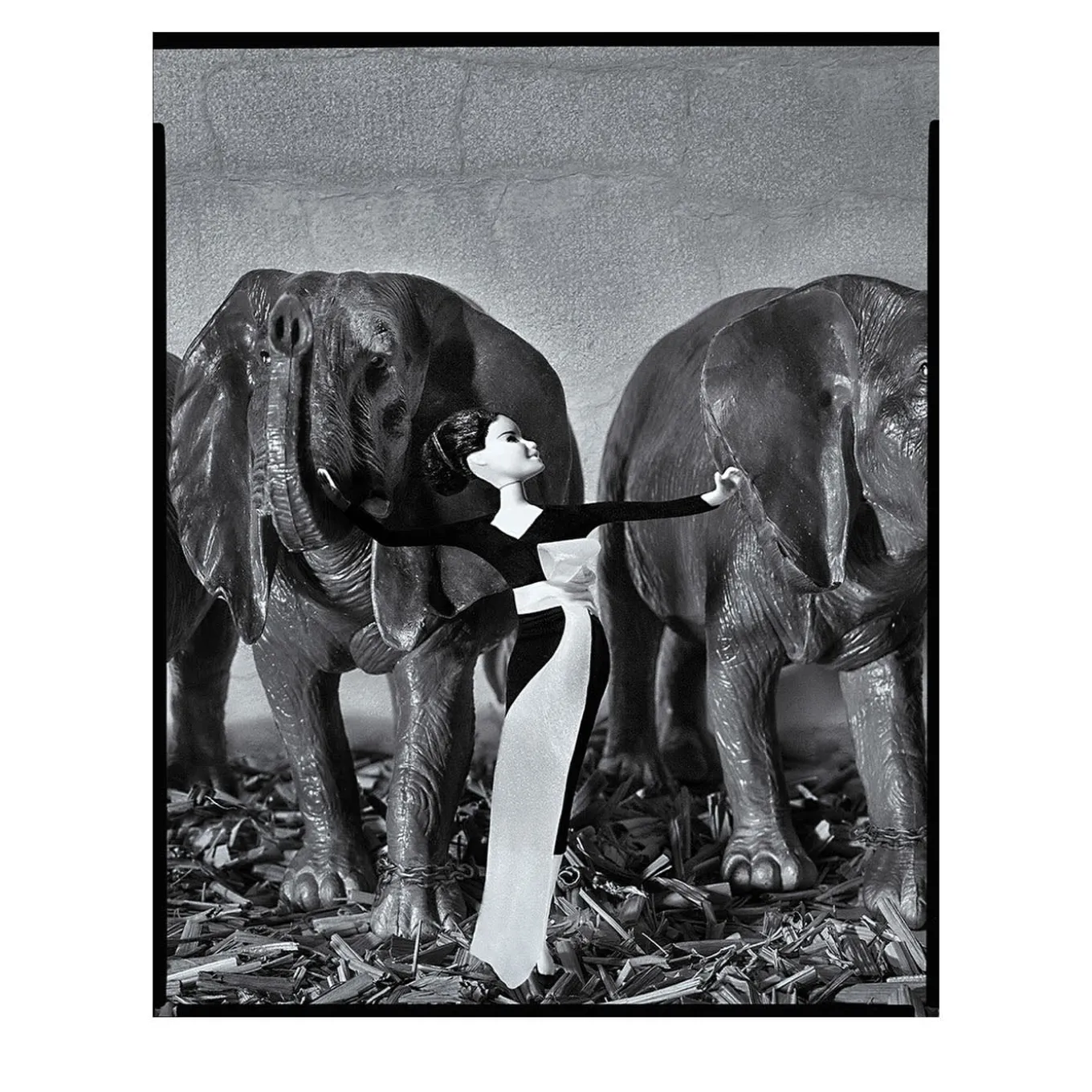 Una fedele riproposizione dell’iconico scatto Dovima with Elephants realizzato da Richard Avedon per Dior è immortalata in questa stampa Giclée su Photo Rag. La minuziosa attenzione ai dettagli, abbinata a una donna con una bambola Barbie, rivela la maestria del fotografo e i simboli della cultura occidentale contemporanea. Contattare il Concierge per conoscere la disponibilità e il prezzo della cornice.