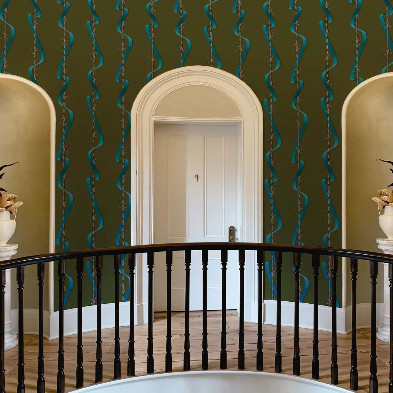 Contrapponendo il filo spinato alla morbidezza di un nastro di seta, Gjoen crea una giustapposizione di due elementi che si intrecciano. Amore contro odio, bene contro male. La storia di bellezza e dolore ci mostra l’infinito intreccio dei due elementi. I due elementi creano una nuova alleanza di speranza e di incertezza.