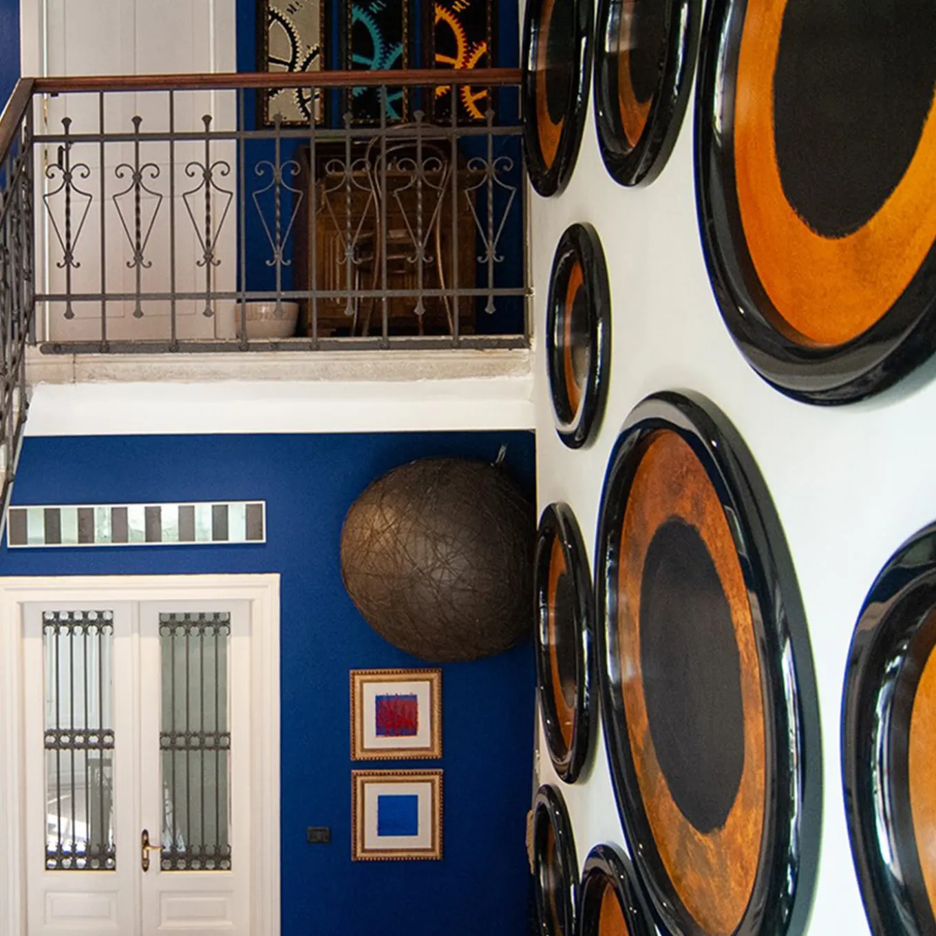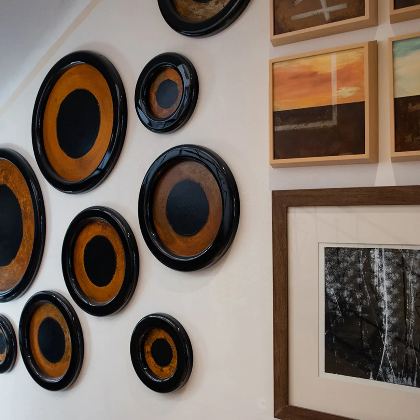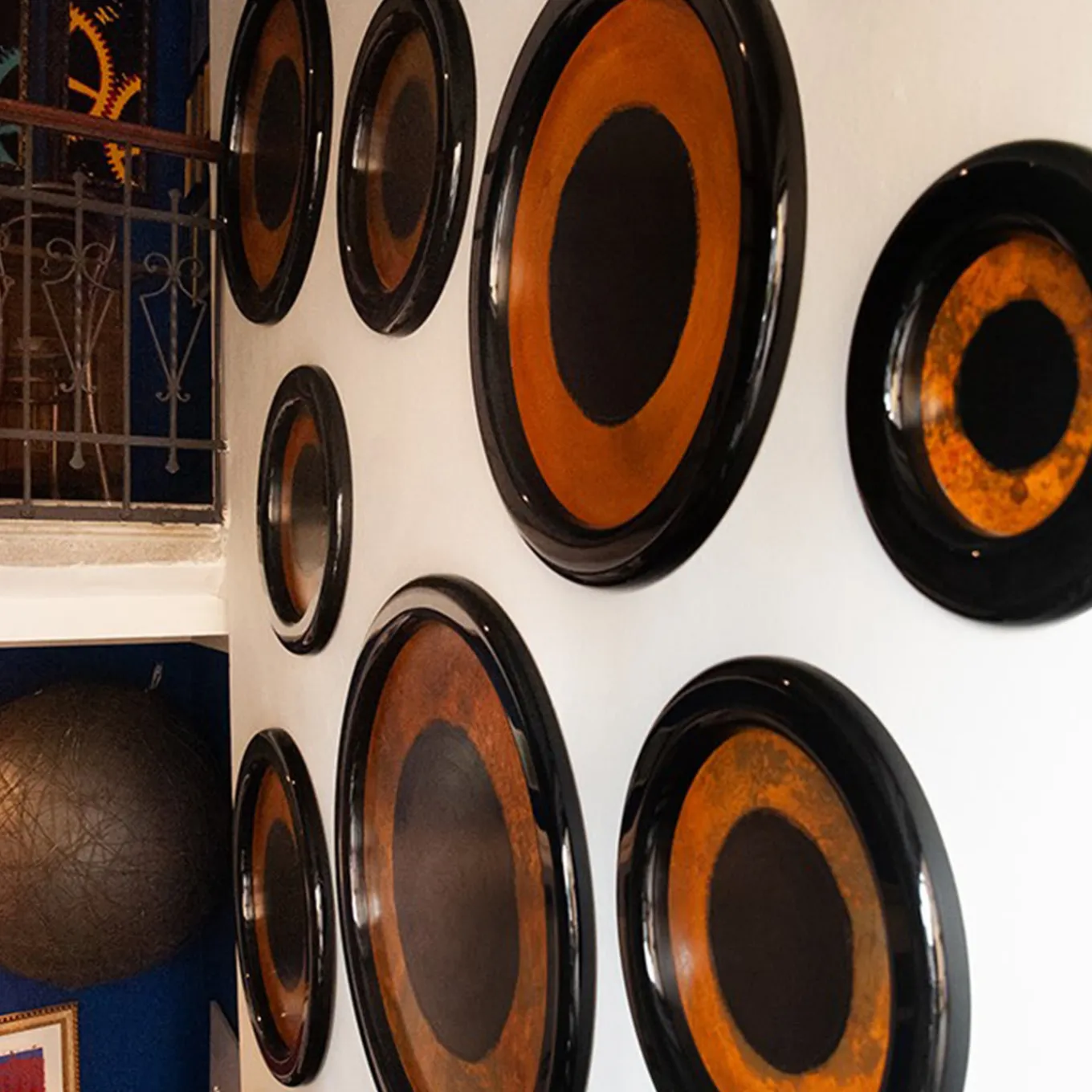 Originale opera modulare, l’Ipnosi è disponibile in 4 dimensioni pensate per decorare ambienti grandi o piccoli. L’occhio centrale è una lastra di ferro ossidato, il cui processo di ossidazione, unico nel suo genere, rende il ferro di colore arancione brillante, offrendo un contrasto stupendo e facendo sì che ogni elemento sia diverso dall’altro. L’elegante cornice circostante è realizzata in legno.