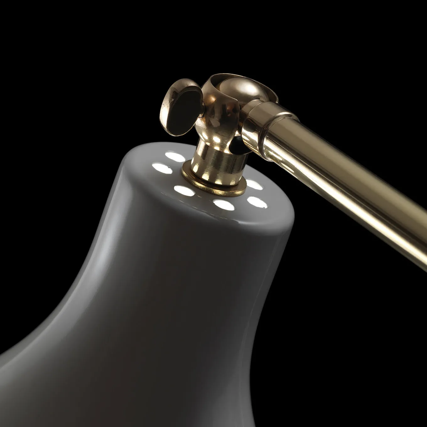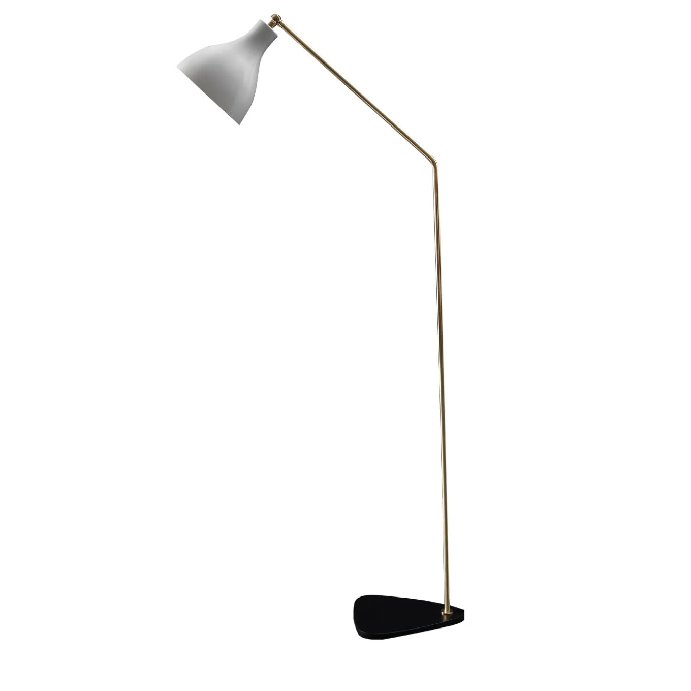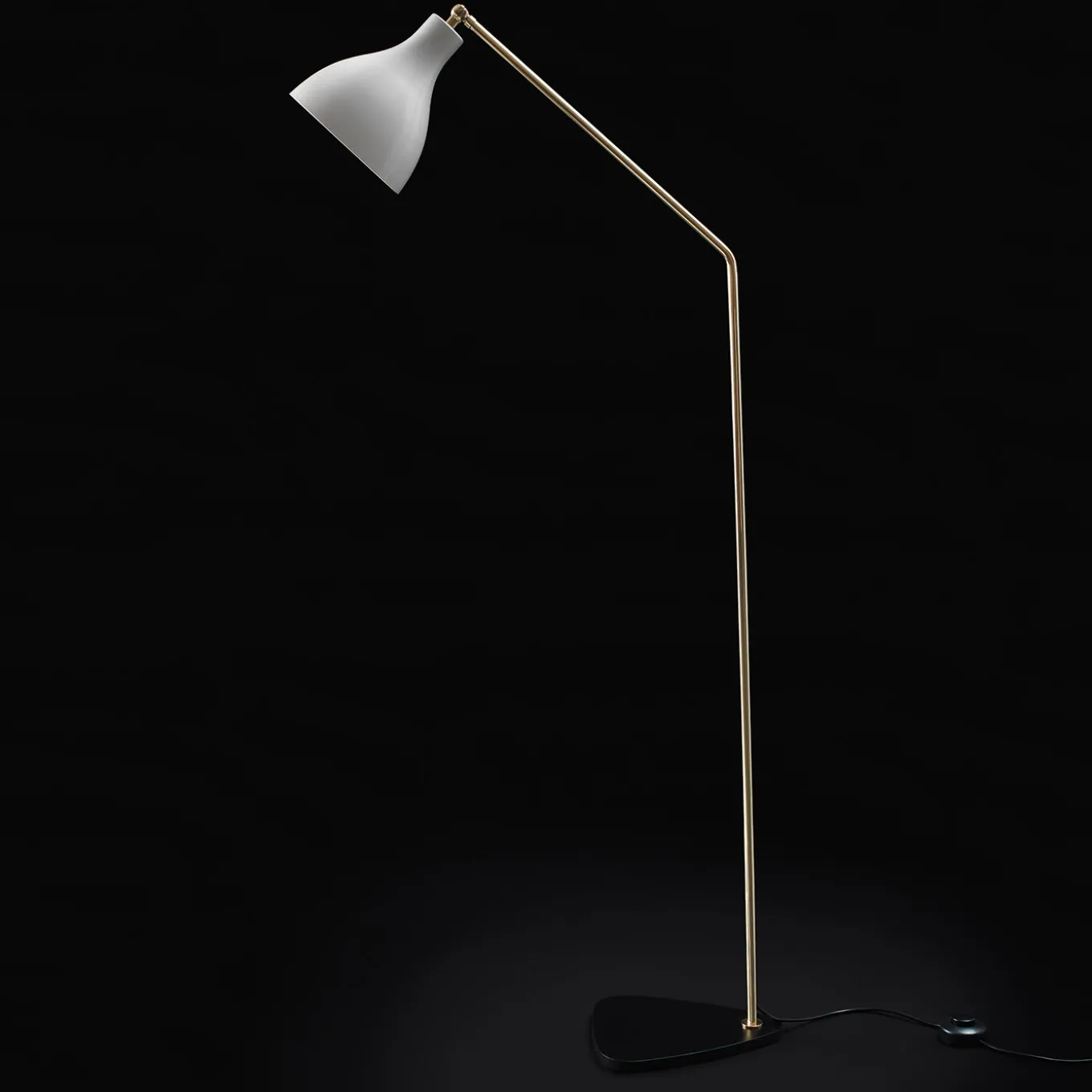 Elegante e slanciata lampada da terra verticale con corpo in ottone, paralume in alluminio verniciato e base in ferro. Può essere ordinata anche nelle seguenti combinazioni: ottone/bianco lucido, ottone/nero testurizzato, cromo/nero testurizzato.