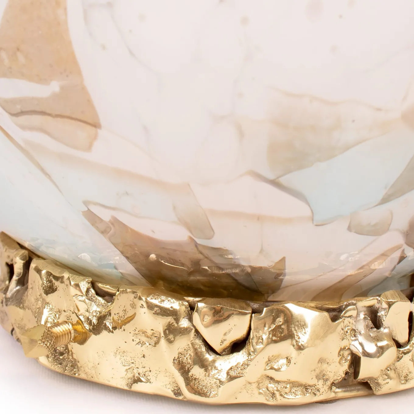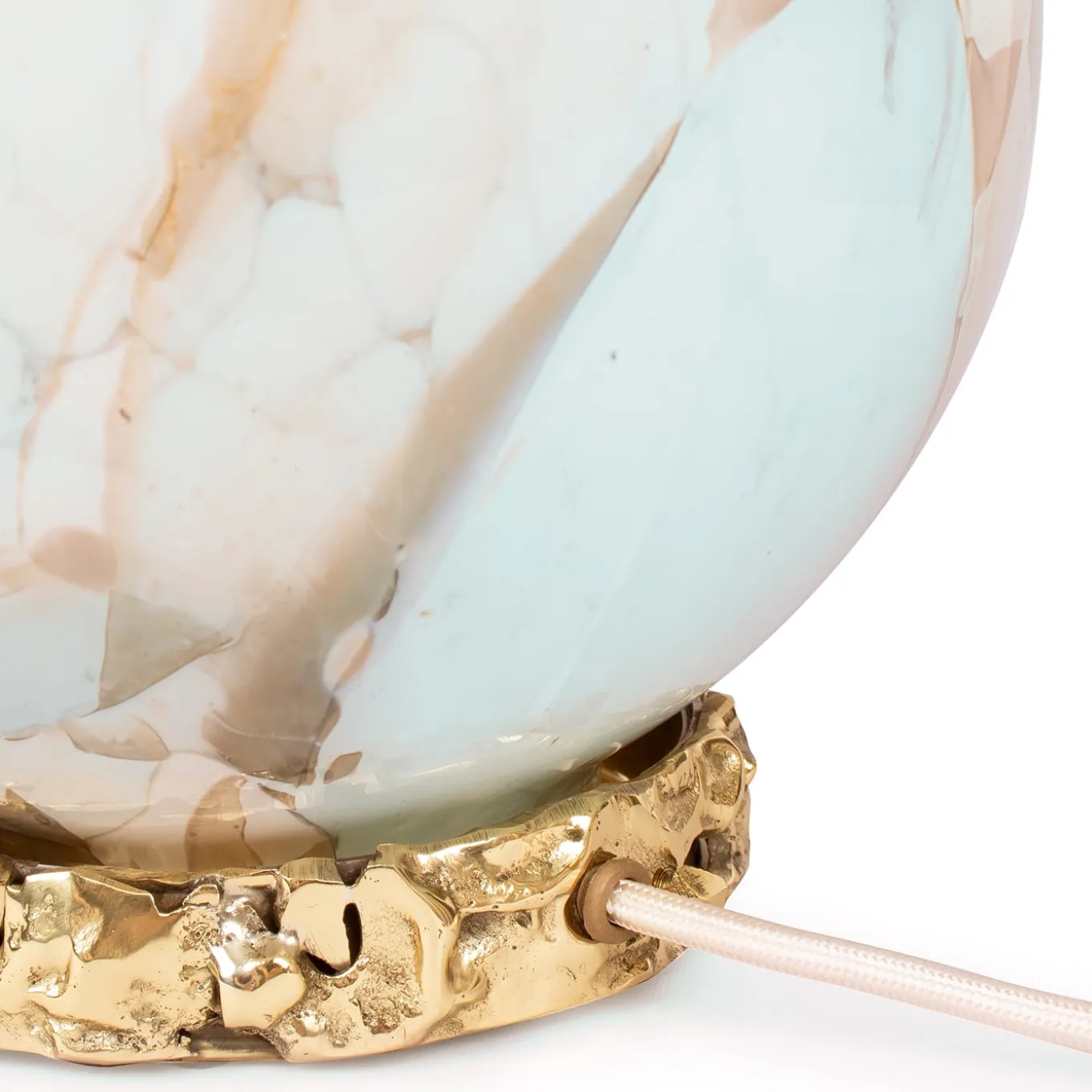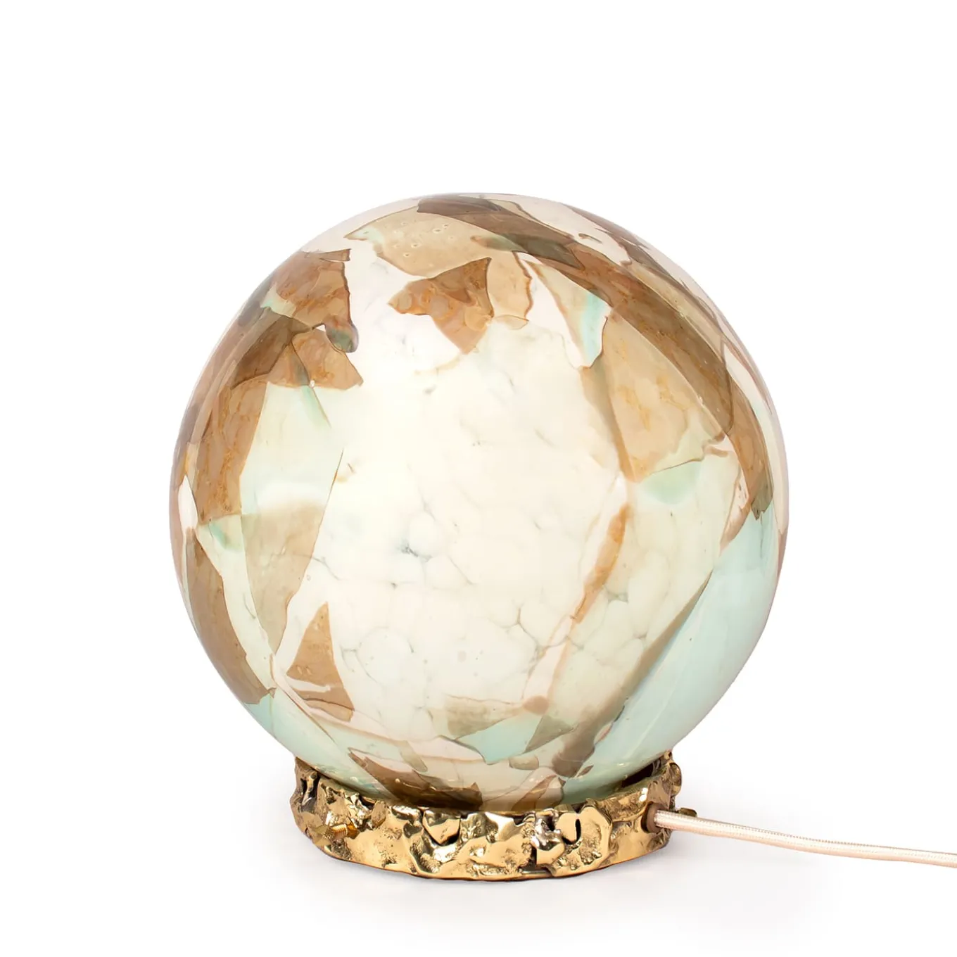 Un pezzo luminoso progettato per valorizzare qualsiasi spazio con un tocco di lusso ed eleganza. La base, realizzata in ottone fuso, presenta una superficie irregolare e strutturata in modo organico, che conferisce un tocco contemporaneo. Questa base moderna contrasta splendidamente con il globo in vetro soffiato di Murano, creato a Venezia con l’identità unica del marchio. Stories of Italy combina le tradizionali tecniche di lavorazione del vetro veneziano con approcci innovativi per reinventare questo materiale antico.